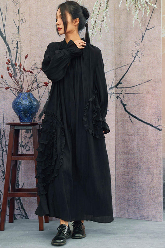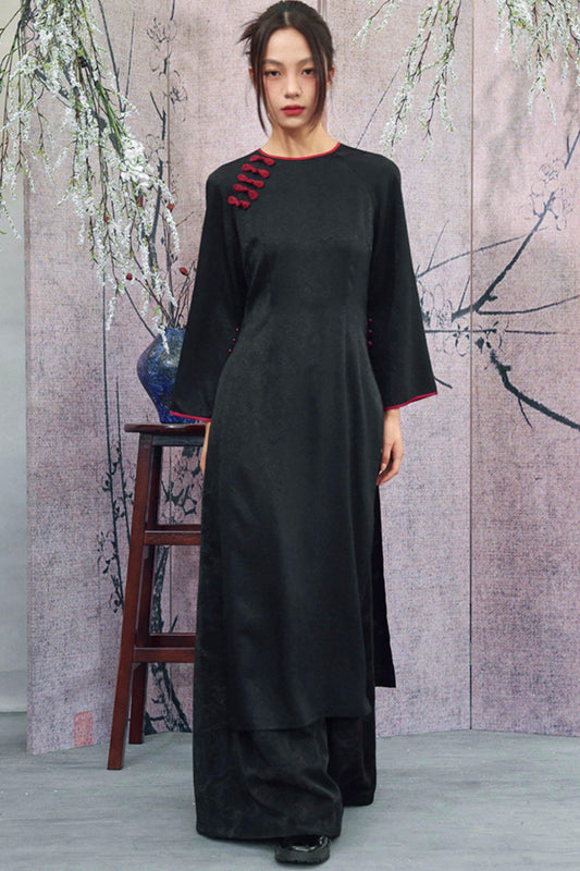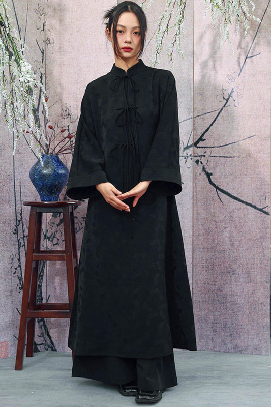 [Pre-order Deadline: April 29] Black Gothic Cape Sleeve Cross Detail Ribbon Collar Dress Set