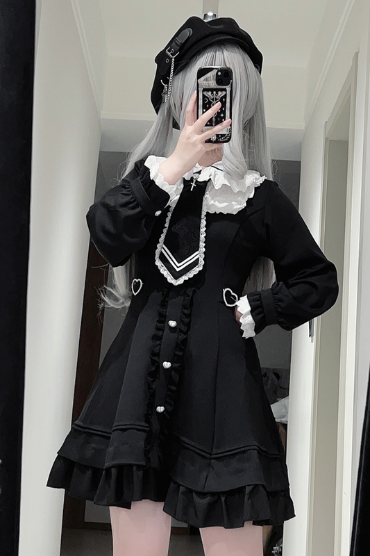 【12月24日予約締切】ゴシックセーラーカラーレースリボンチェックドレスセットアップ