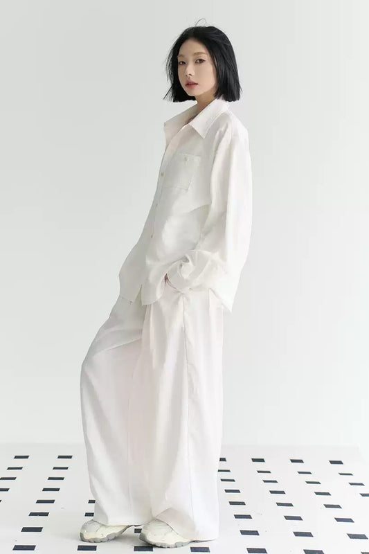 Cotton Linen Long Sleeve Shirt Trousers Set-Up