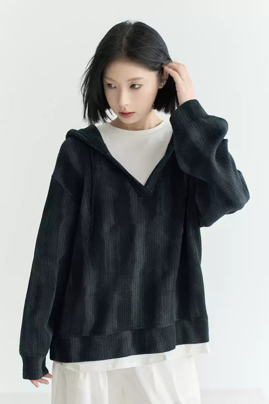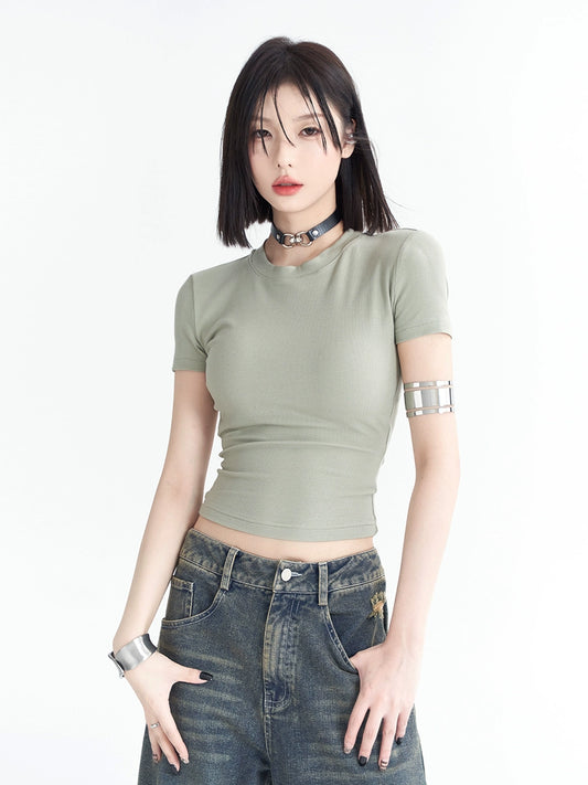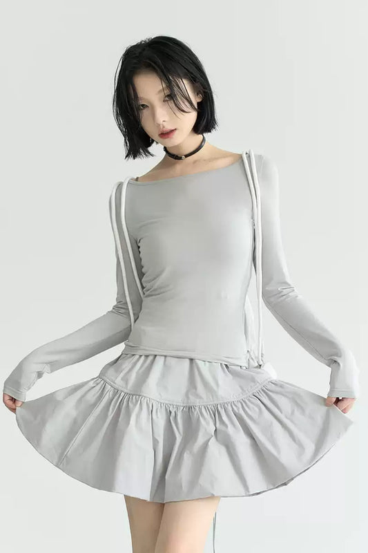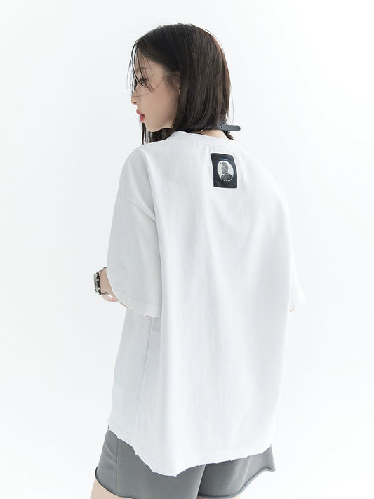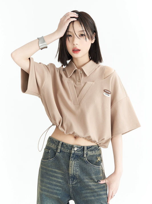 Drawstring Short Polo Collar Rabbit T-Shirt