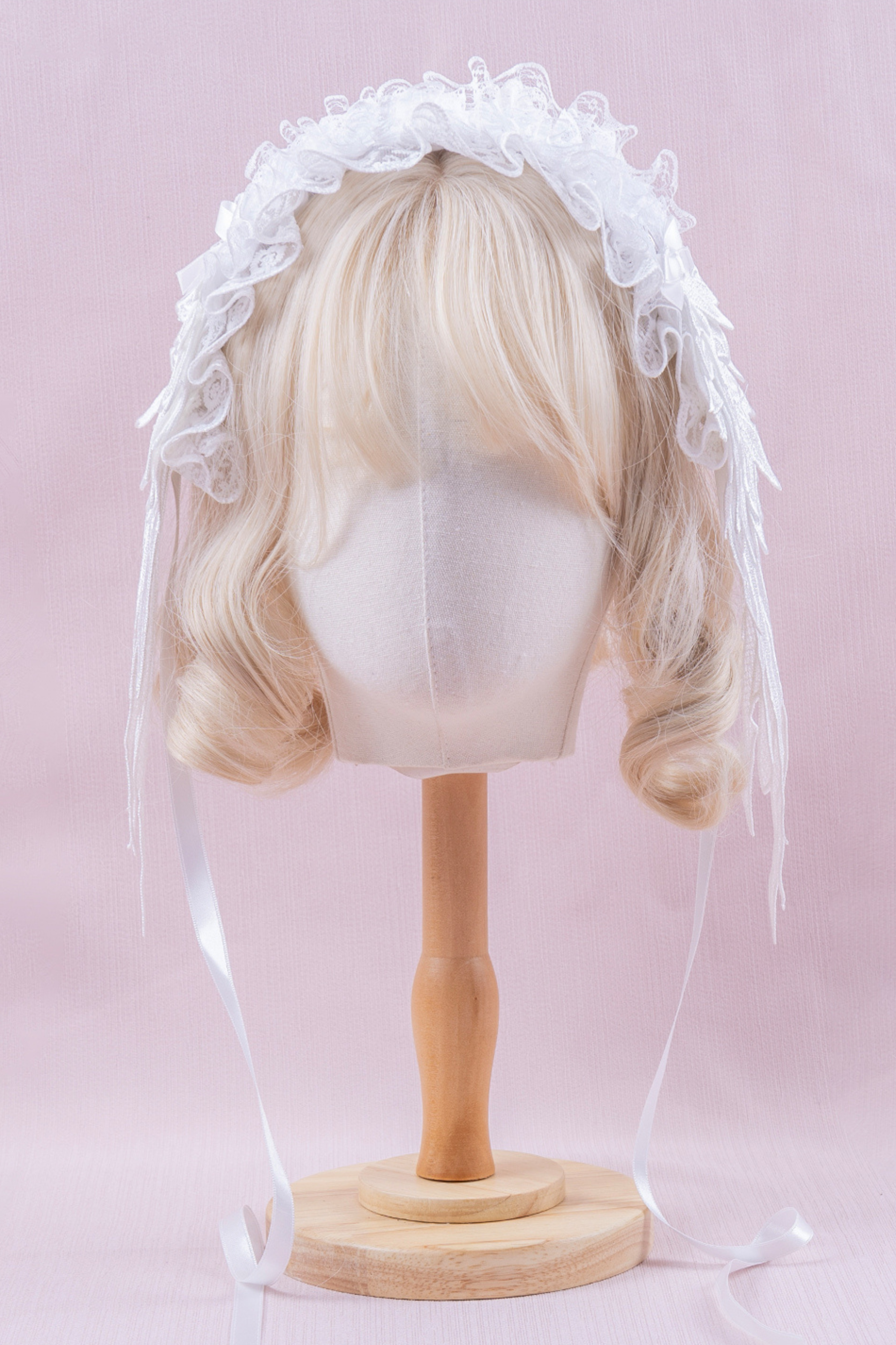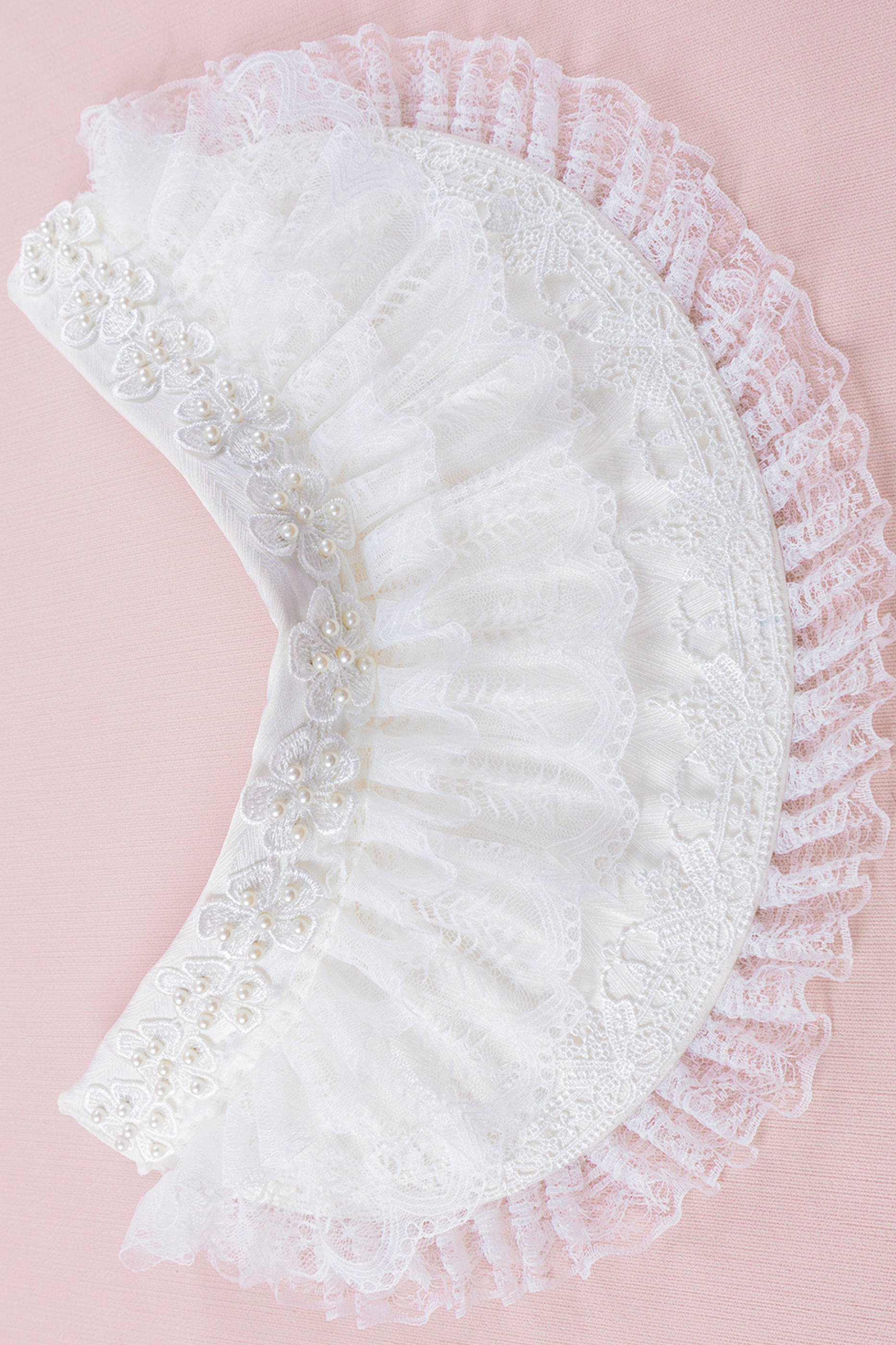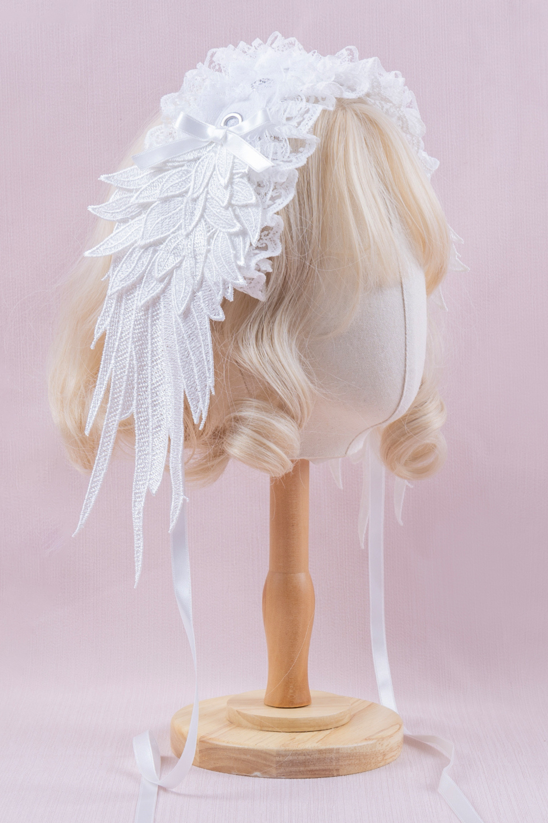 ホワイトレースブライダルスタイルボンネット+ヘアバンド+クリップ+スリーブ