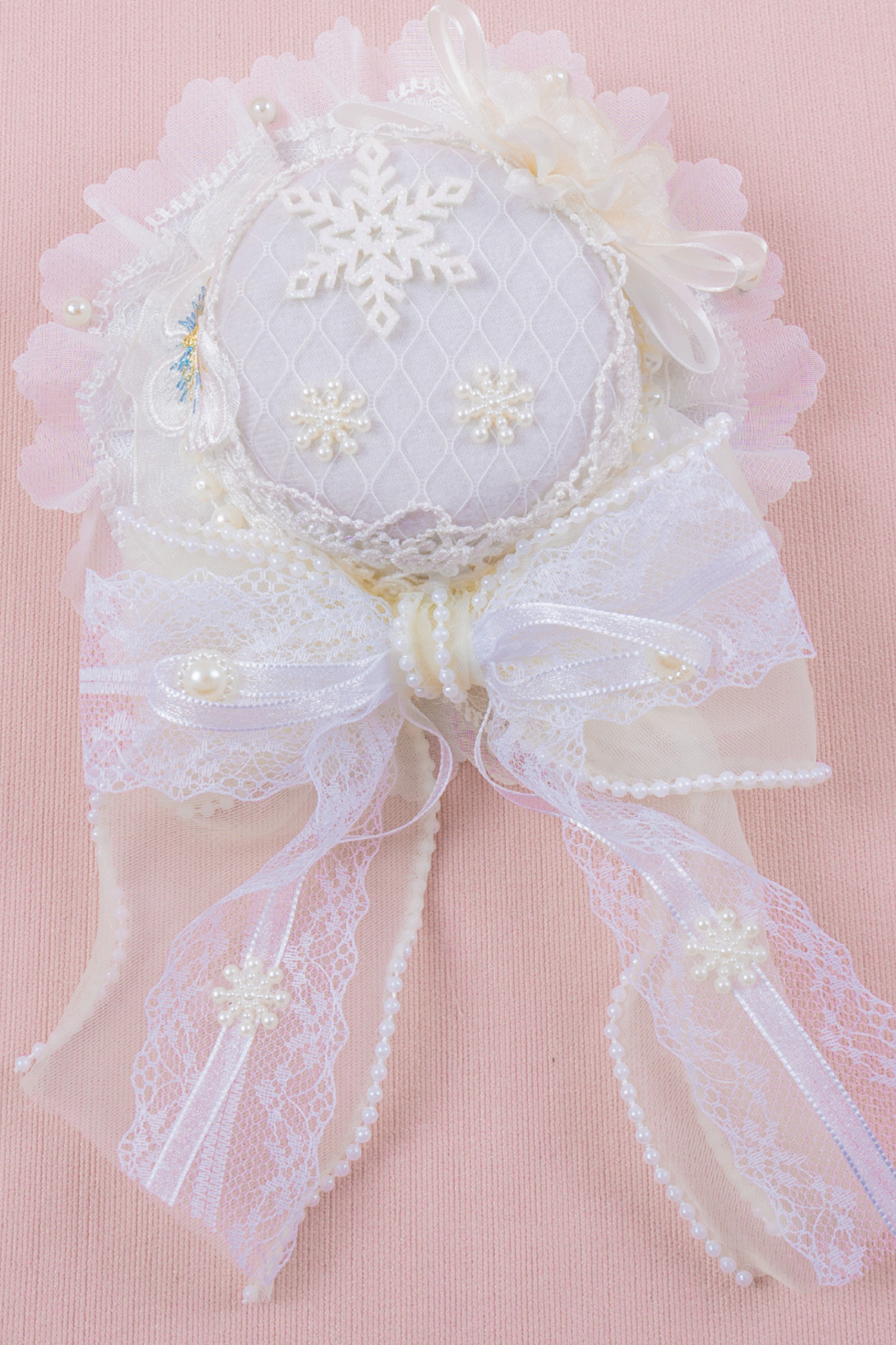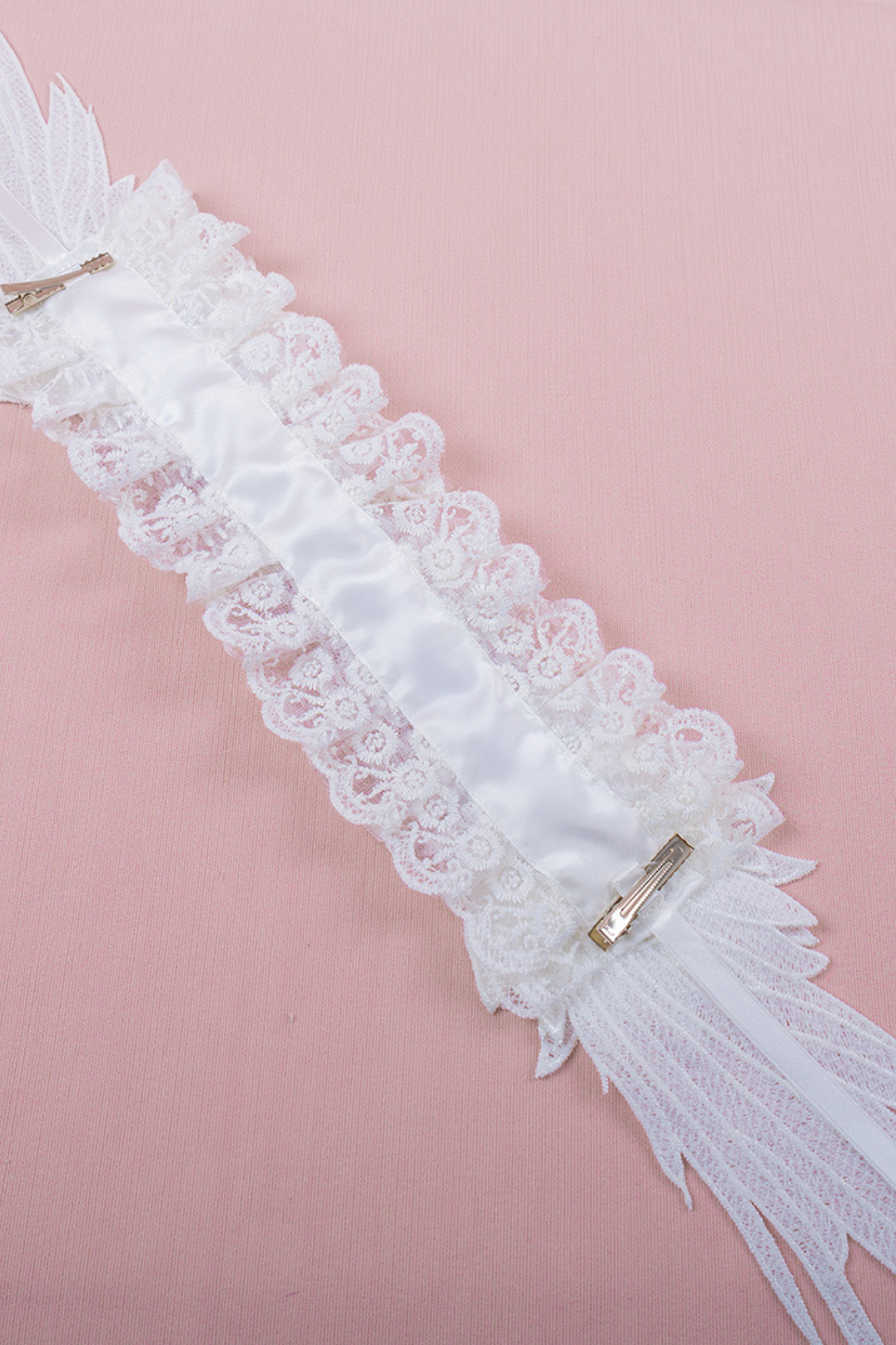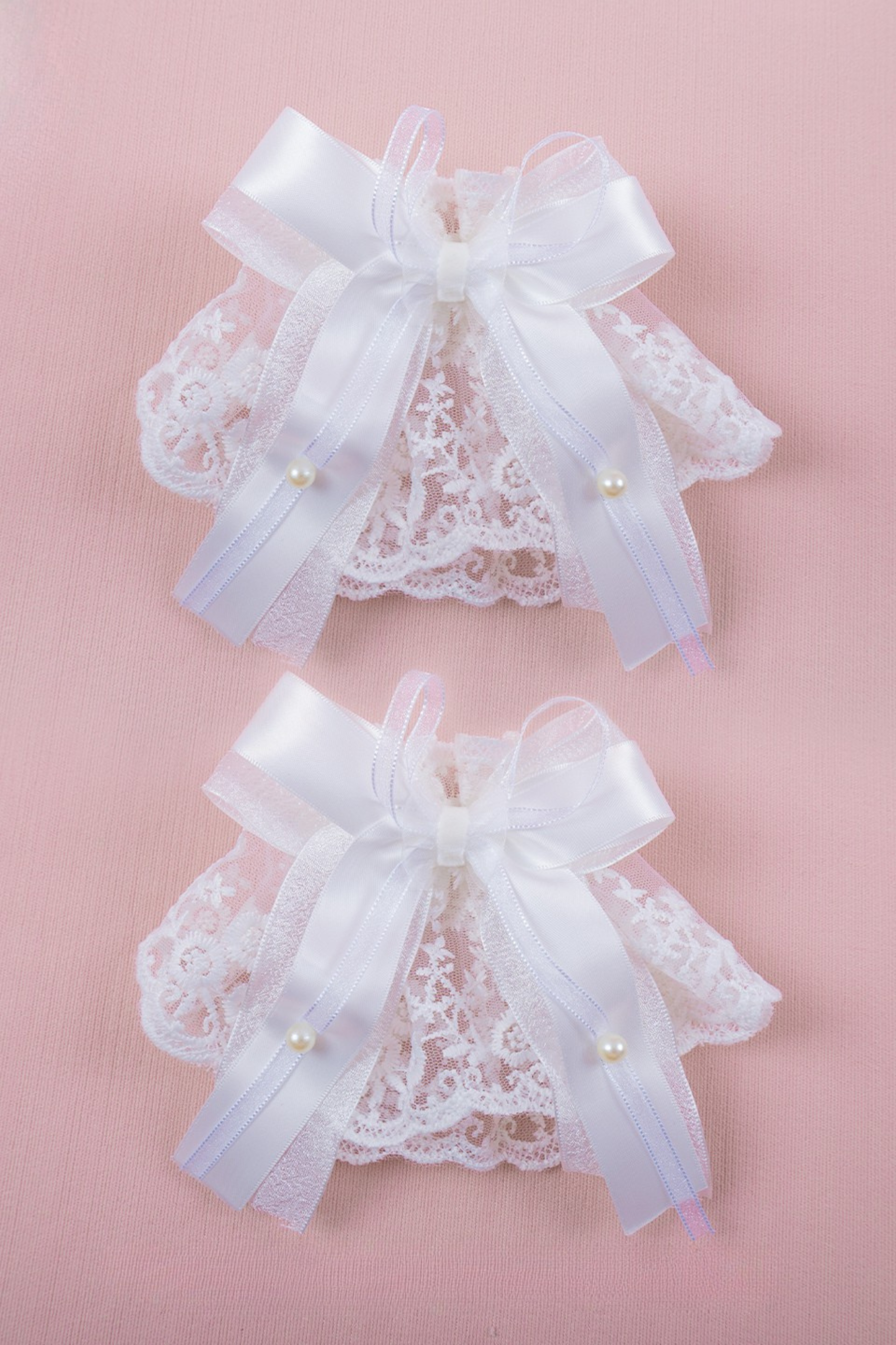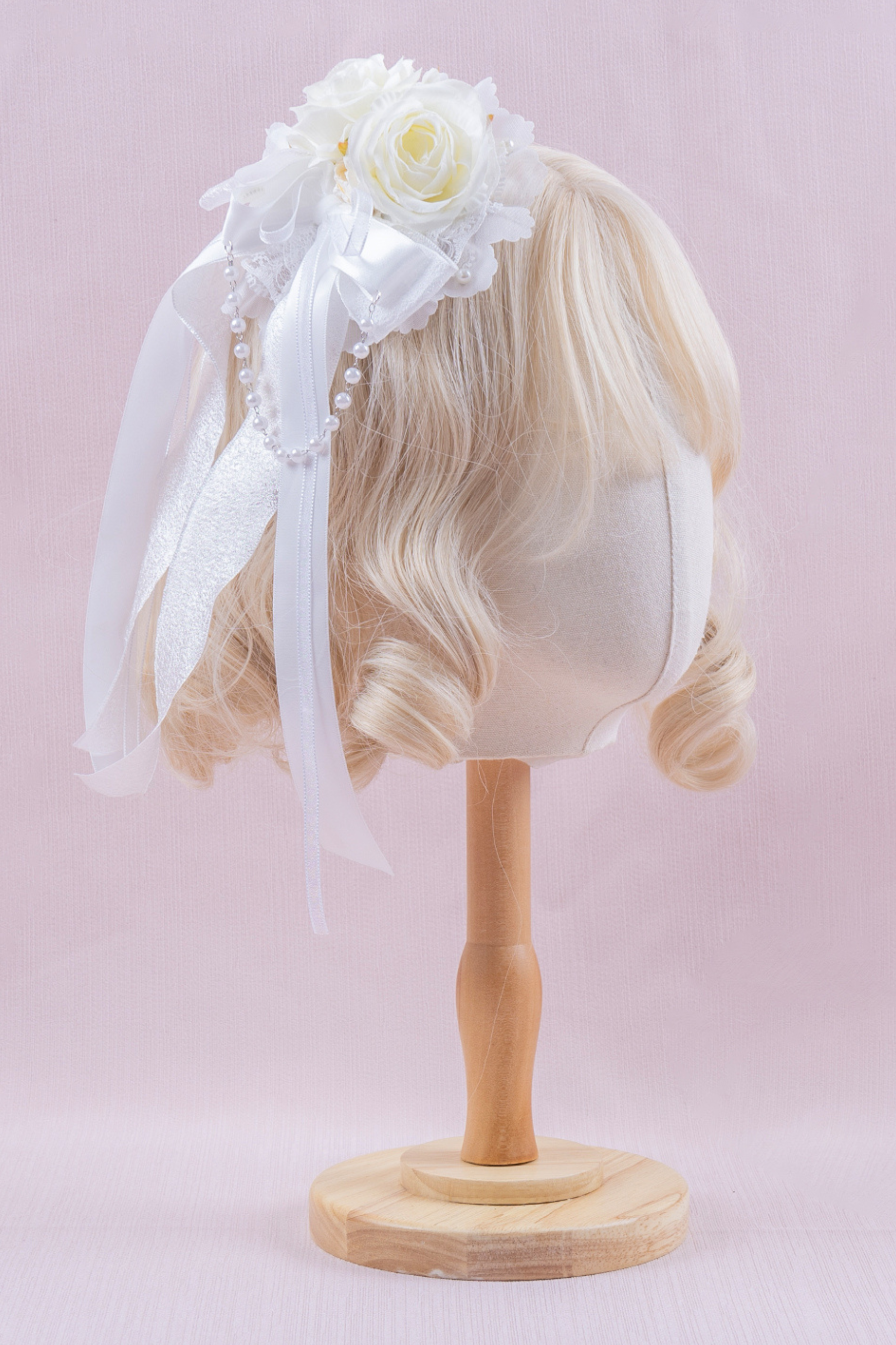 ホワイトレースブライダルスタイルボンネット+ヘアバンド+クリップ+スリーブ