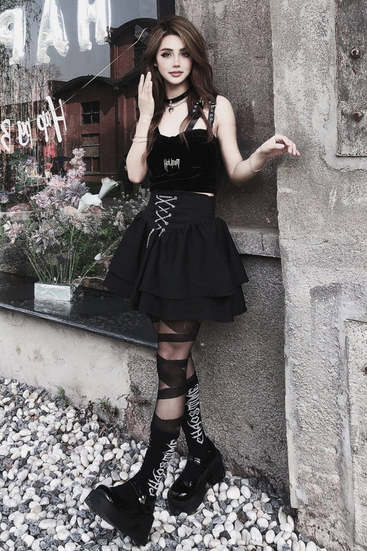 [Reservation product] Born Theater Horror Night Dark Gothic Halloween Shirt + Skirt Set