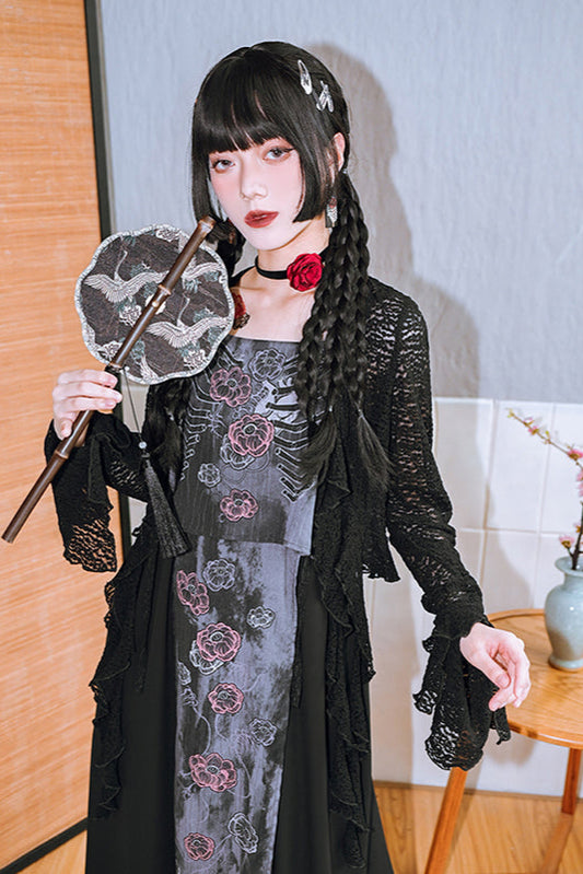 Flower Bone Dark Style Short Top