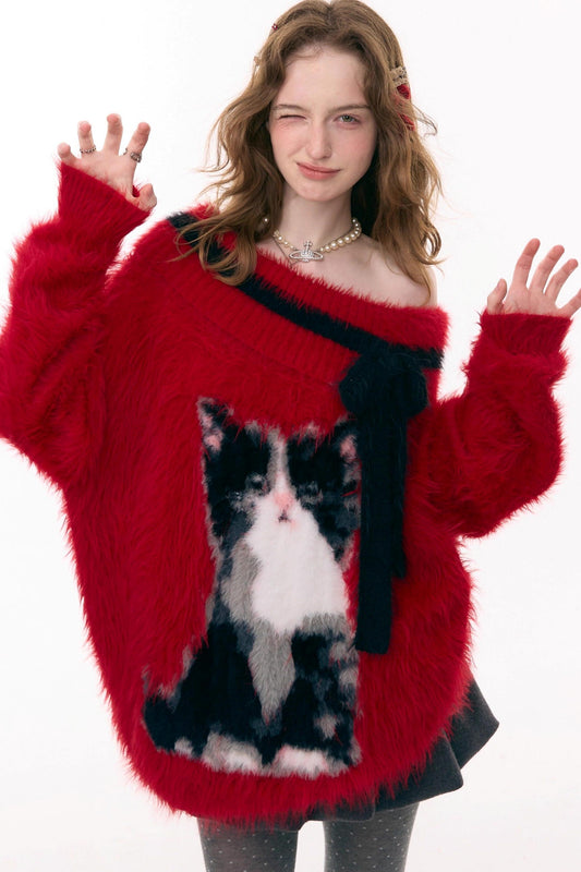 Dark Cat Off-Shoulder Sweater