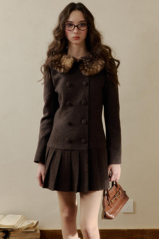 Sweet Coat + High Waist Skirt + Knit Scarf