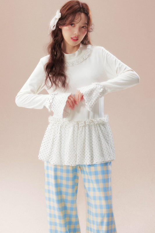 Gardenia Whispering Lace Blouse + Polka Dot Skirt
