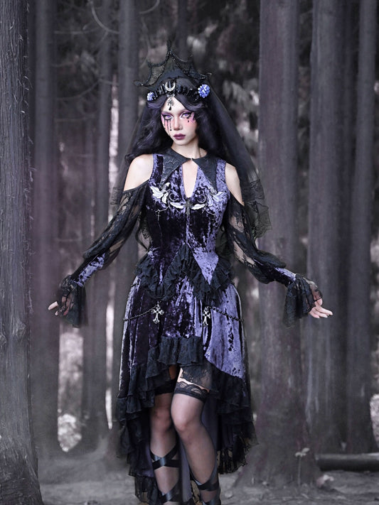 Duchess Gothic Velvet Long Tail Belted Suspender Tulle Dress Suit