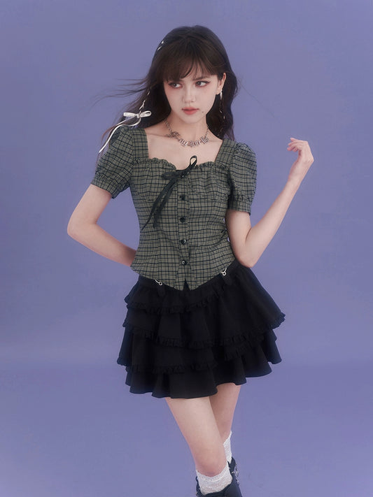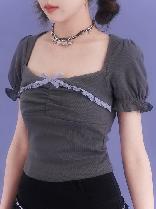 Gothic Cross Velvet Spider Lace Lantern Sleeve Top