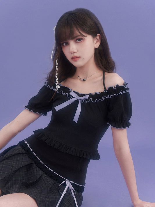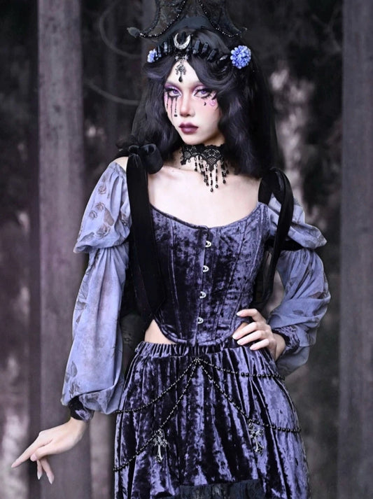 Luna Gothic Ribbon Shoulder Velvet Corset Top