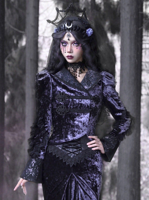 Luna Velvet Stand Collar Slim Gothic European Style Jacket