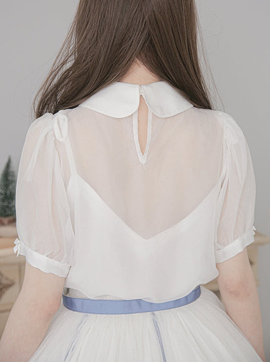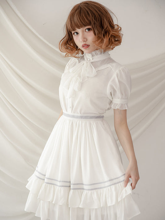 Curtain Chiffon Lolita Lantern Sleeve Vintage Shirt [Short/Long