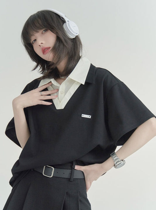 Polo Collar Sleeveless Short T-Shirt Loose Top