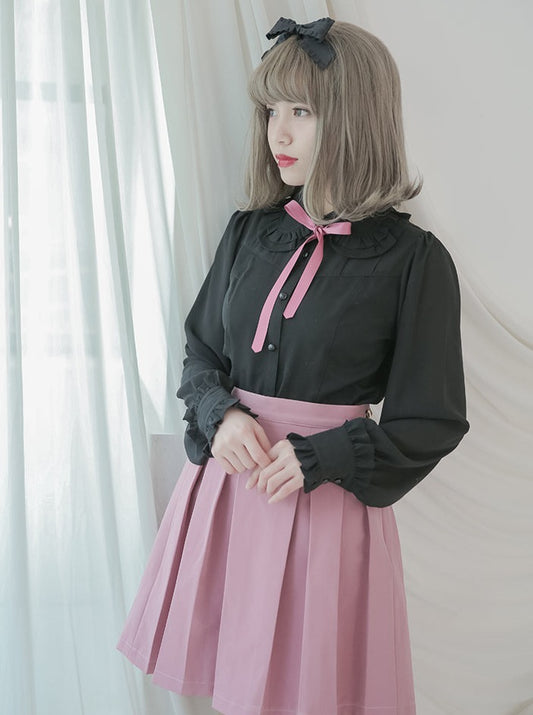 Wind Summer Ribbon Chiffon Frilled Shirt
