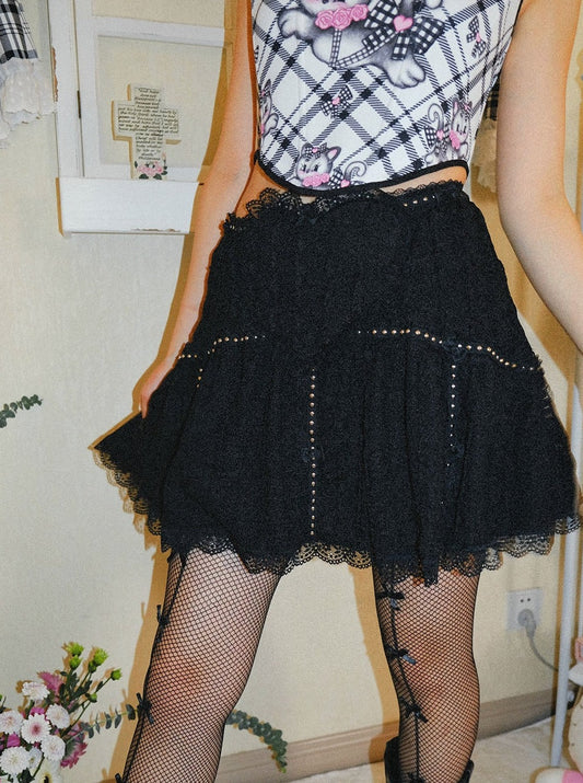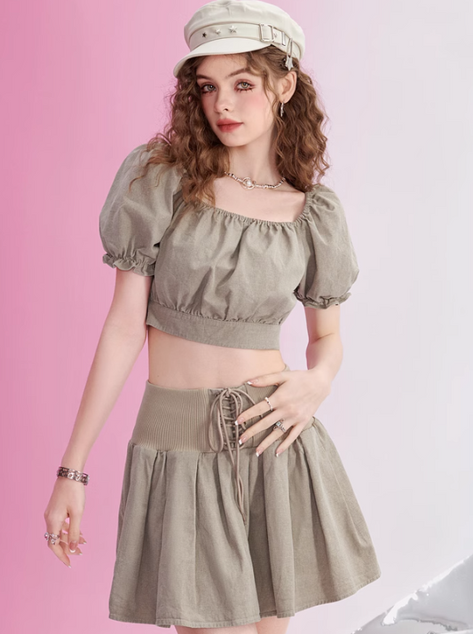 Puff Sleeve Top + Lace-up Skirt Set-up