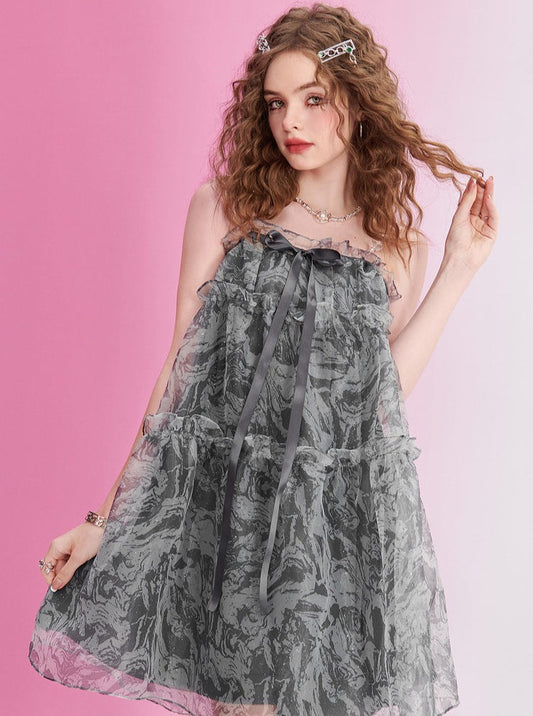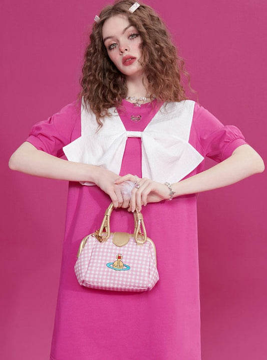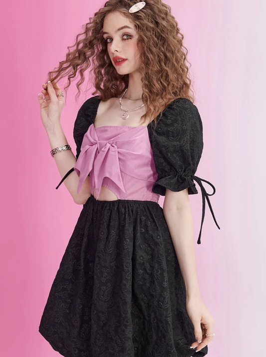 Sweet Big Bow Puff Sleeve Straight A-Line Dress