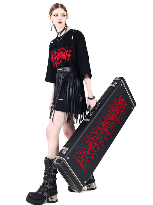 Punk Rock Thorn Letter Print Hole T-shirt