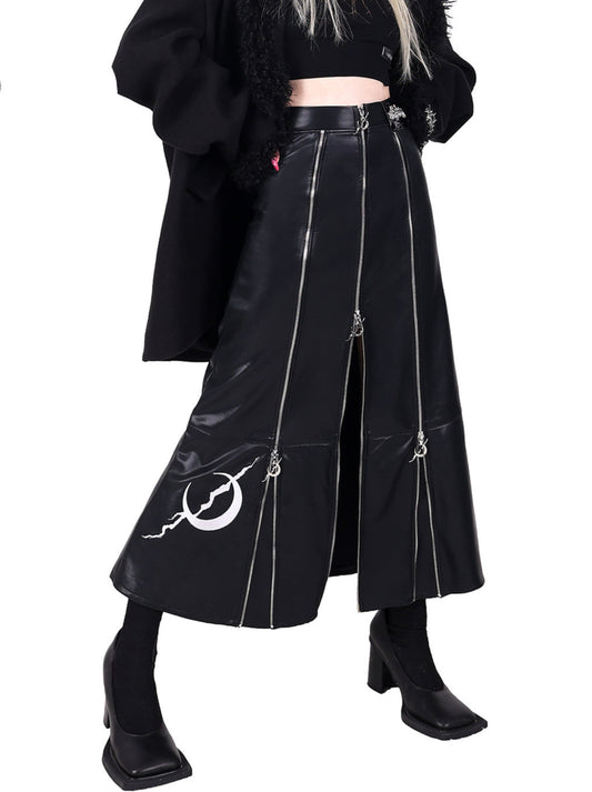 Electric Moon Design Zip Super A-Line Leather Long Skirt