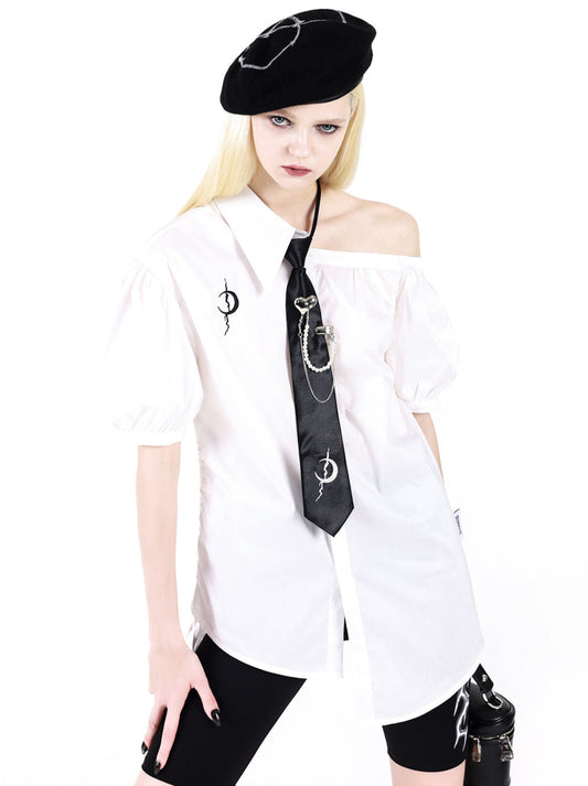 Electric Moon Cool Asymmetric Off Shoulder Puff Sleeve Shirt