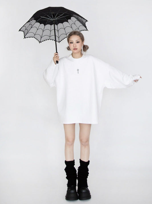 Dark Cool Electric Moon Drop Shoulder Back Long Shirt