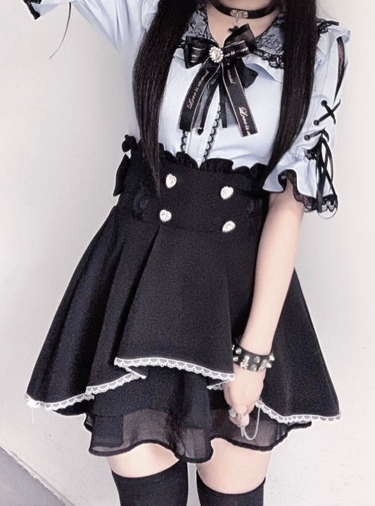 Pearl ribbon doll color mine lace blouse