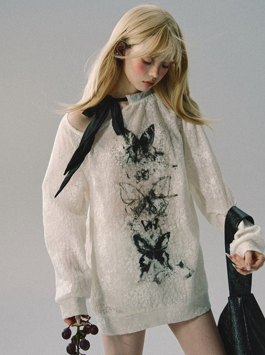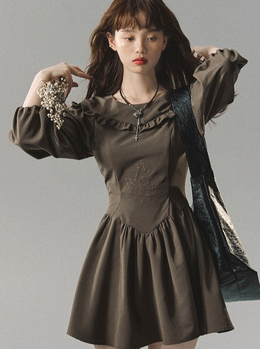 Bloody French Lentil Pastel Lace Waistband Sleeve Dress