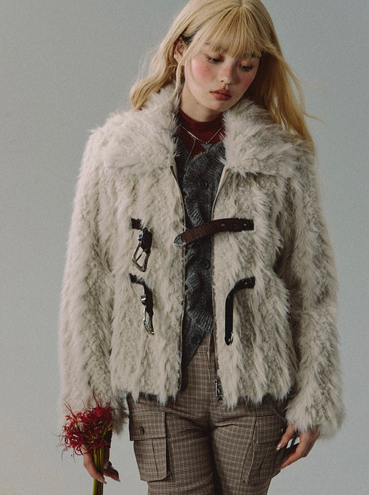 Medium Old Small Lapel Embossed Belt Fur Jacket