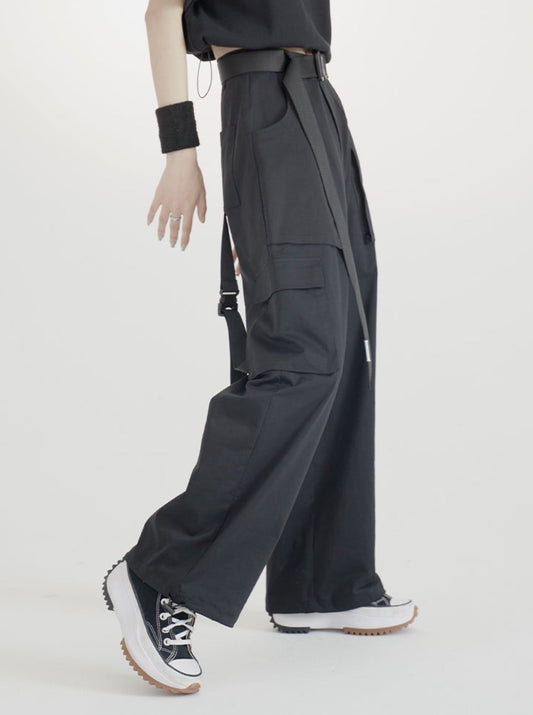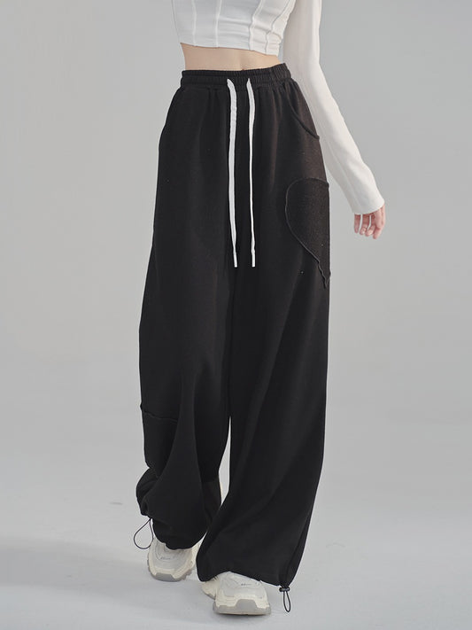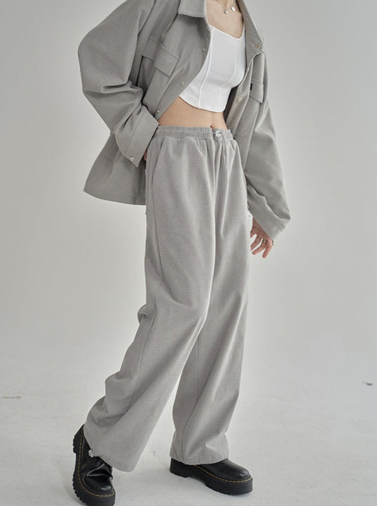 Print Ribbon Puff Sleeve Cropped T -shirt + Blue Draping Pants