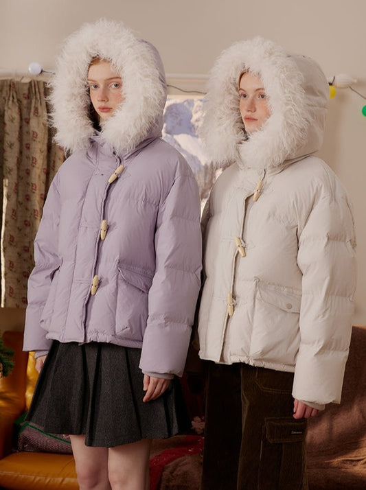 Light Horn Button Fur Down Jacket