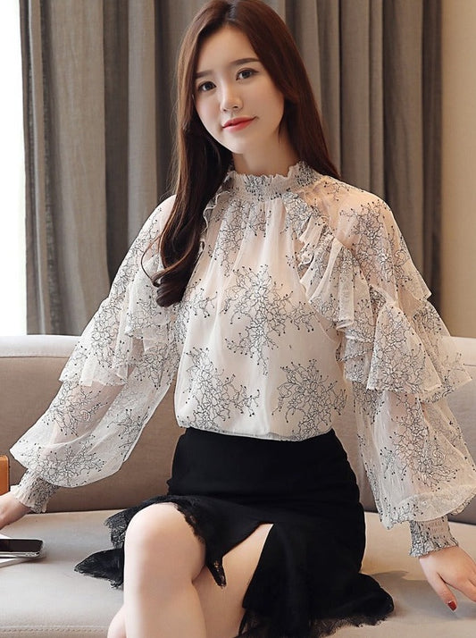 Flower Sheer Ruffle Race Tops