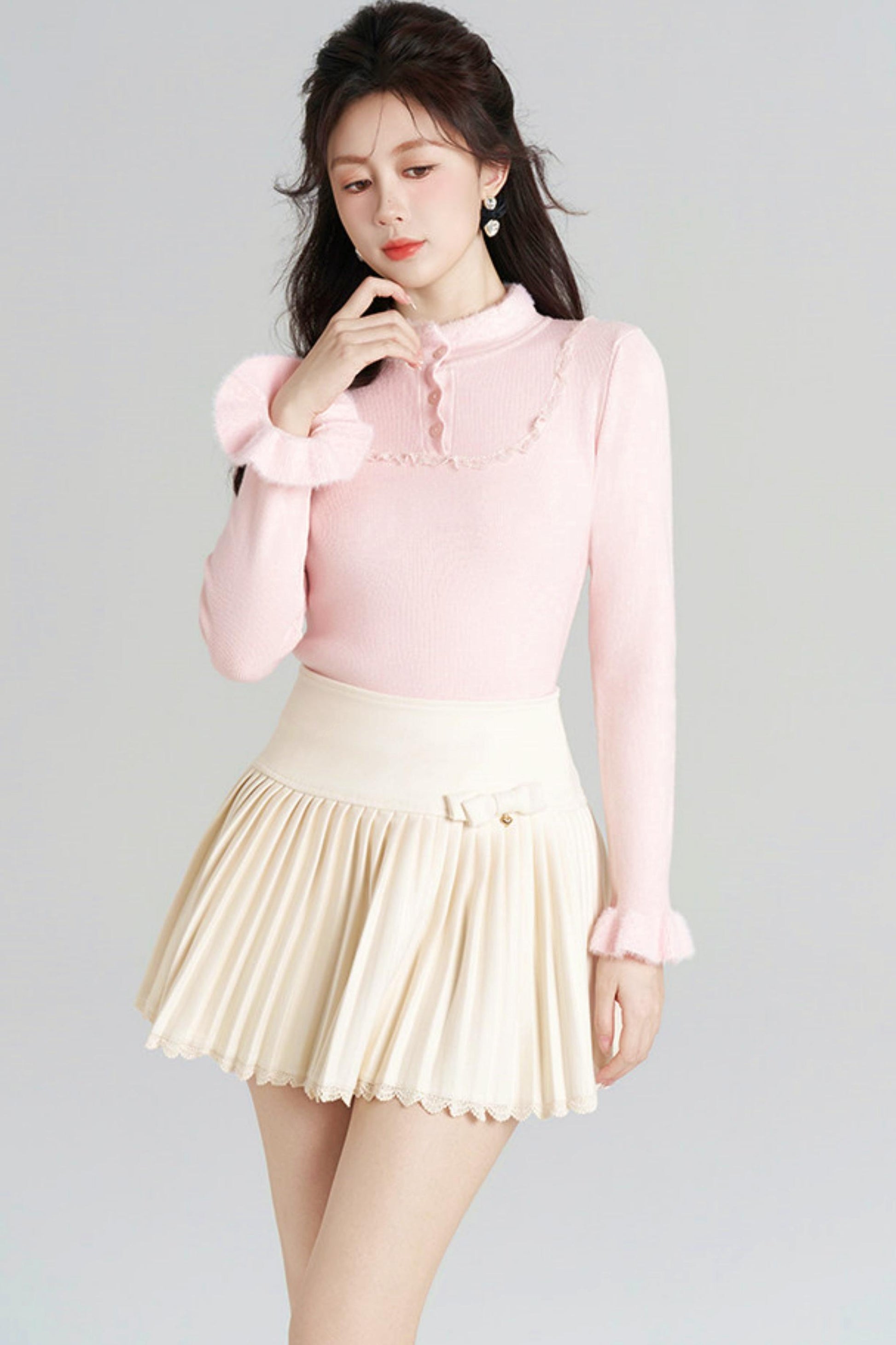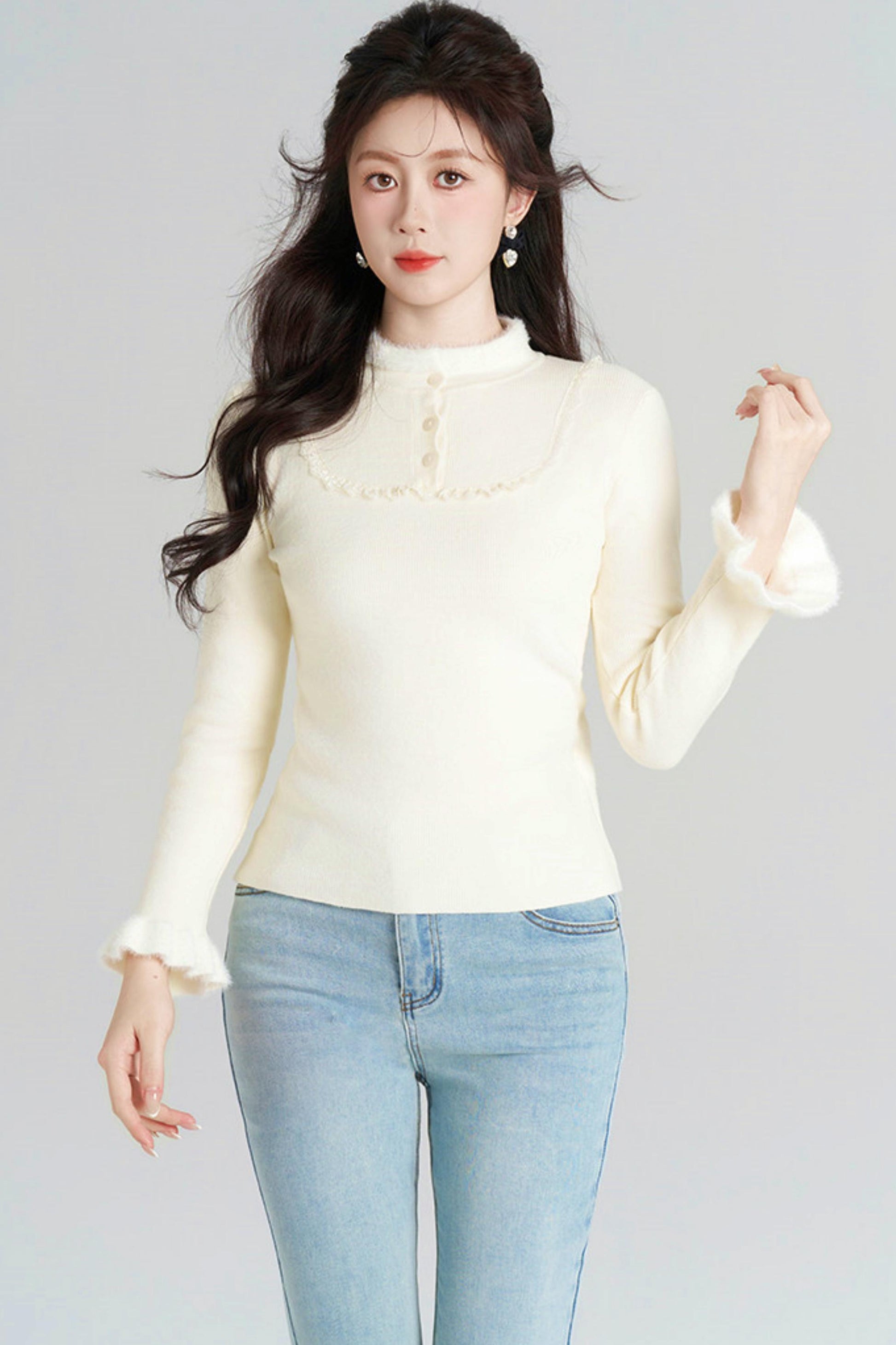 French Slim Stand Collar Top