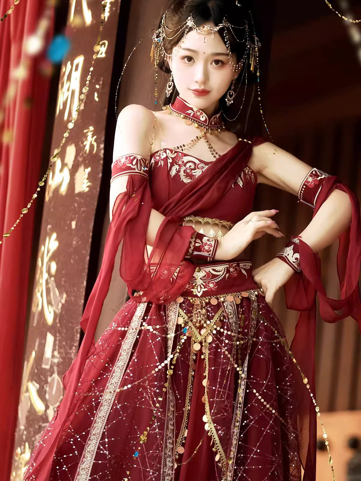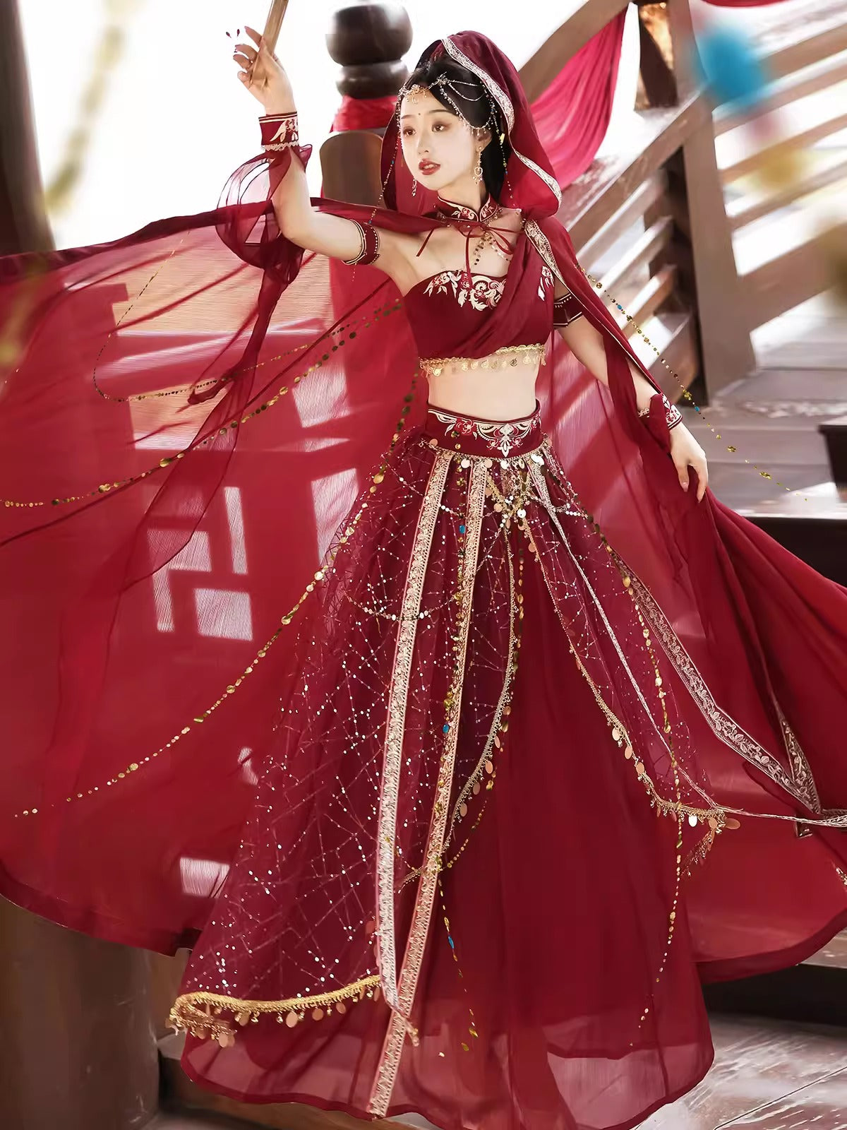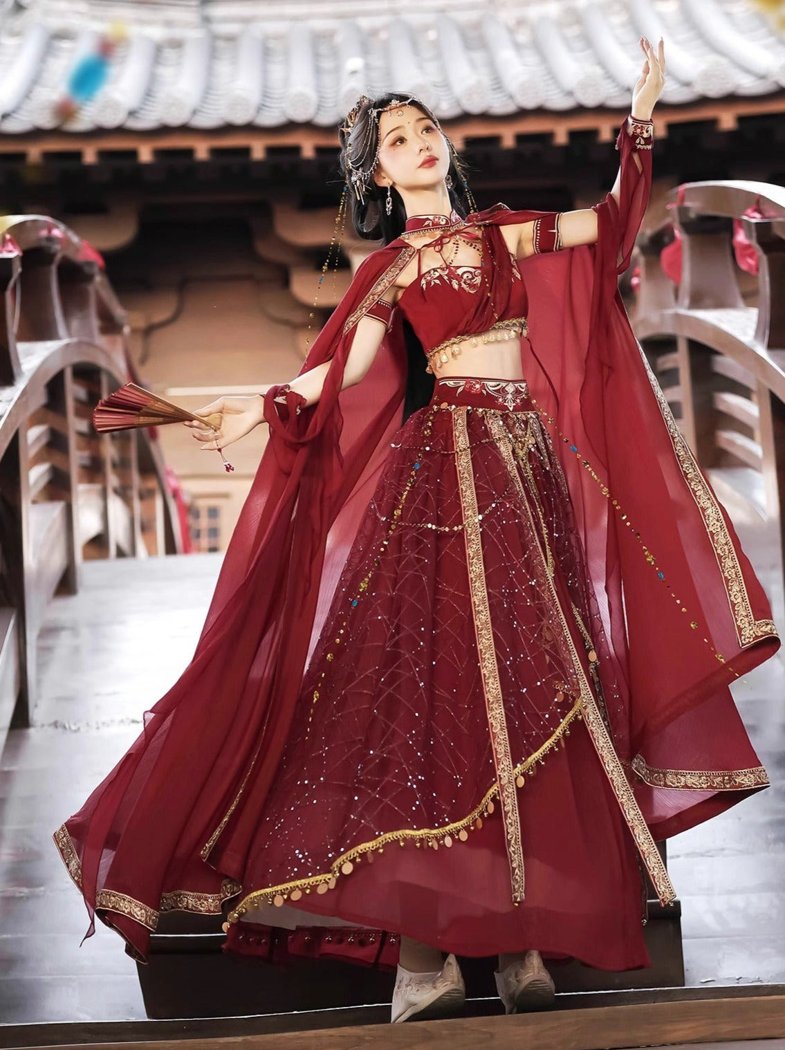 ❤Frame Spirit Queen Western Dancer Skirt Tube Top Cape Suit❤︎
