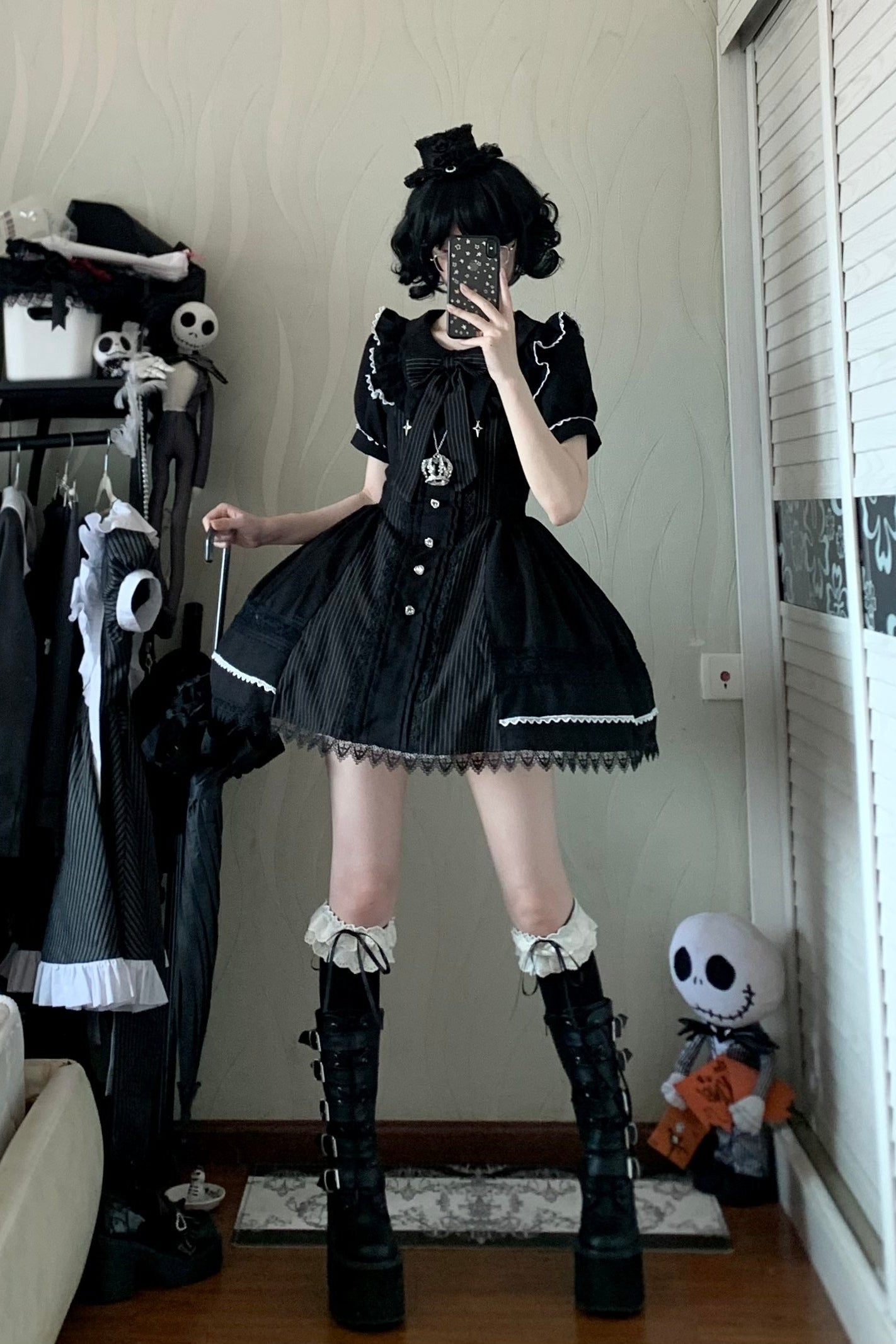 ❤❤❤Gothic Doll Striped Lolita Dress + Sleeves❤