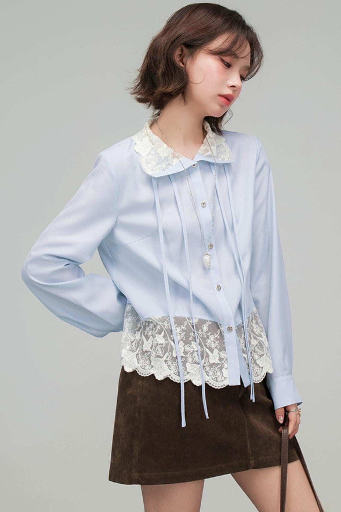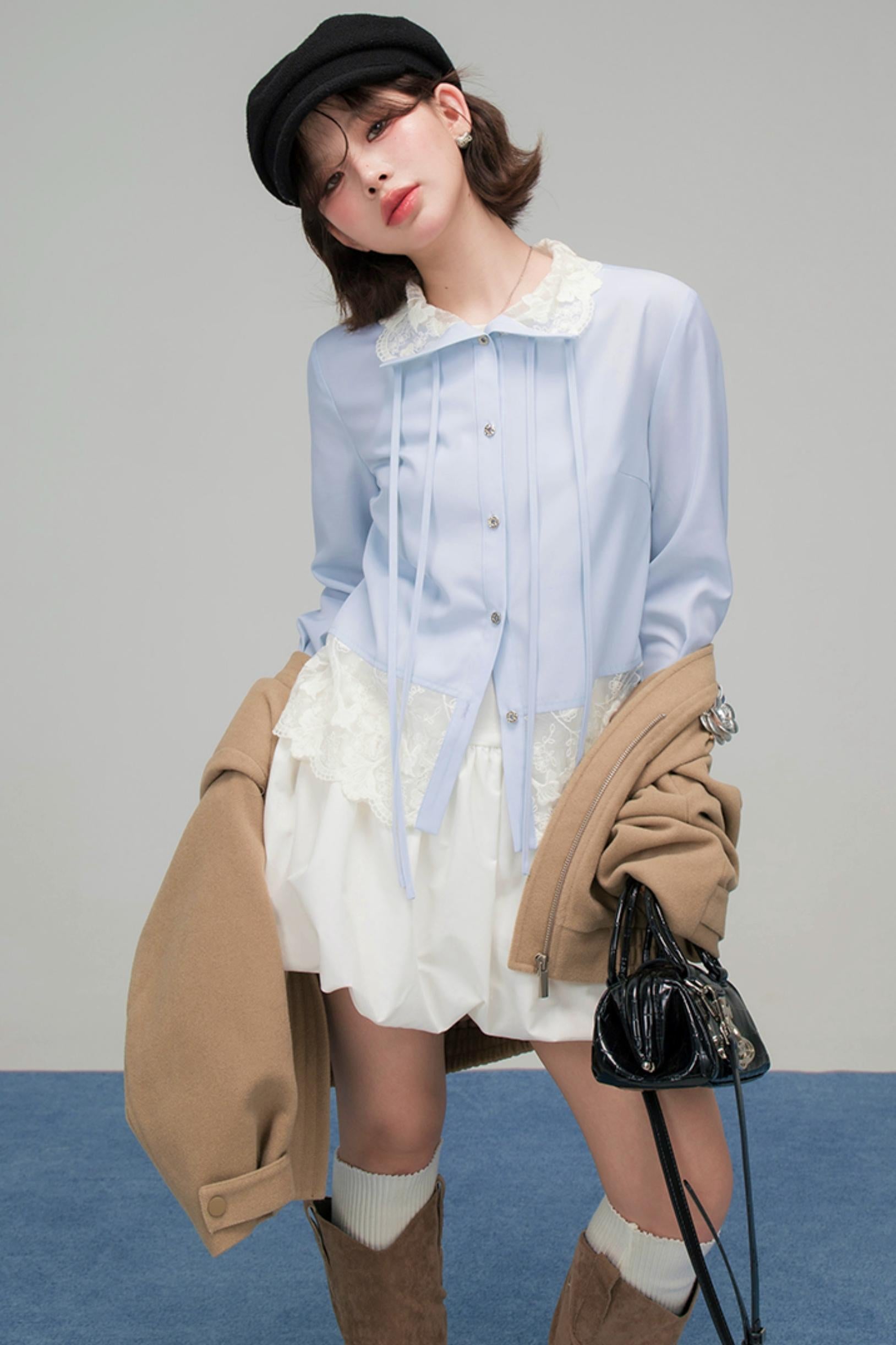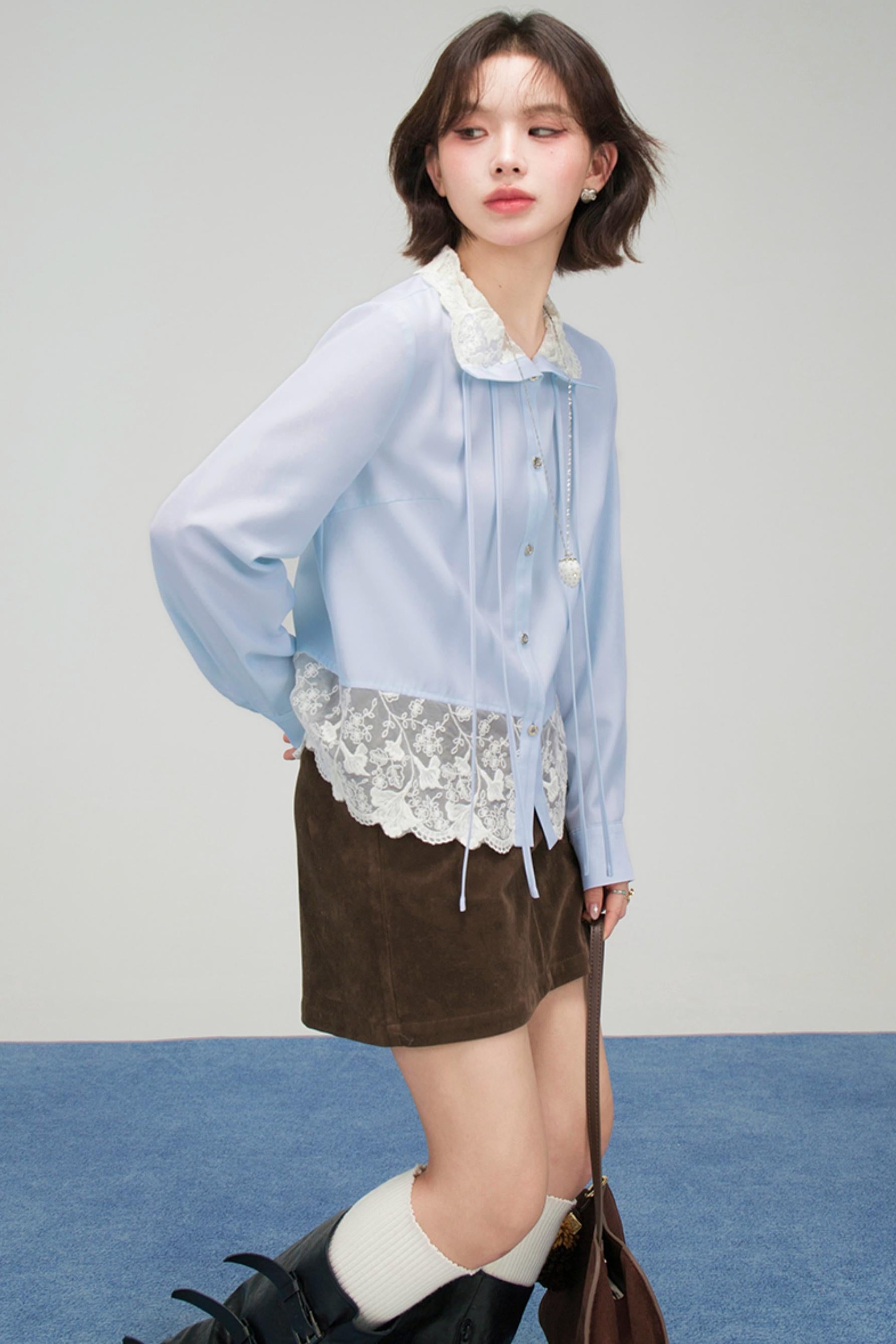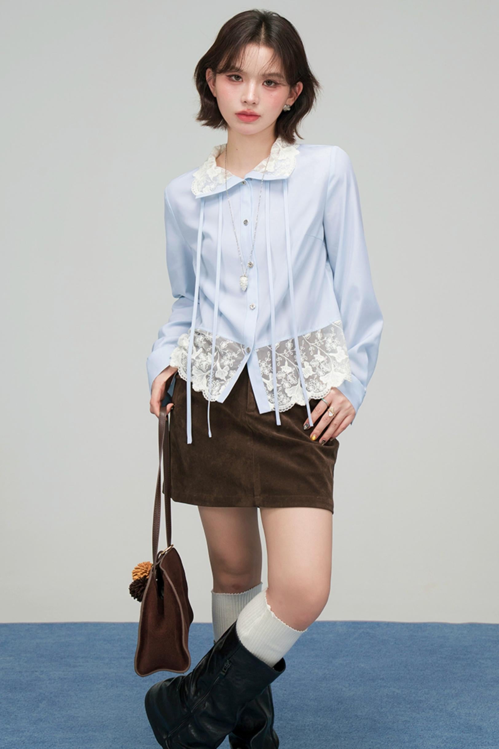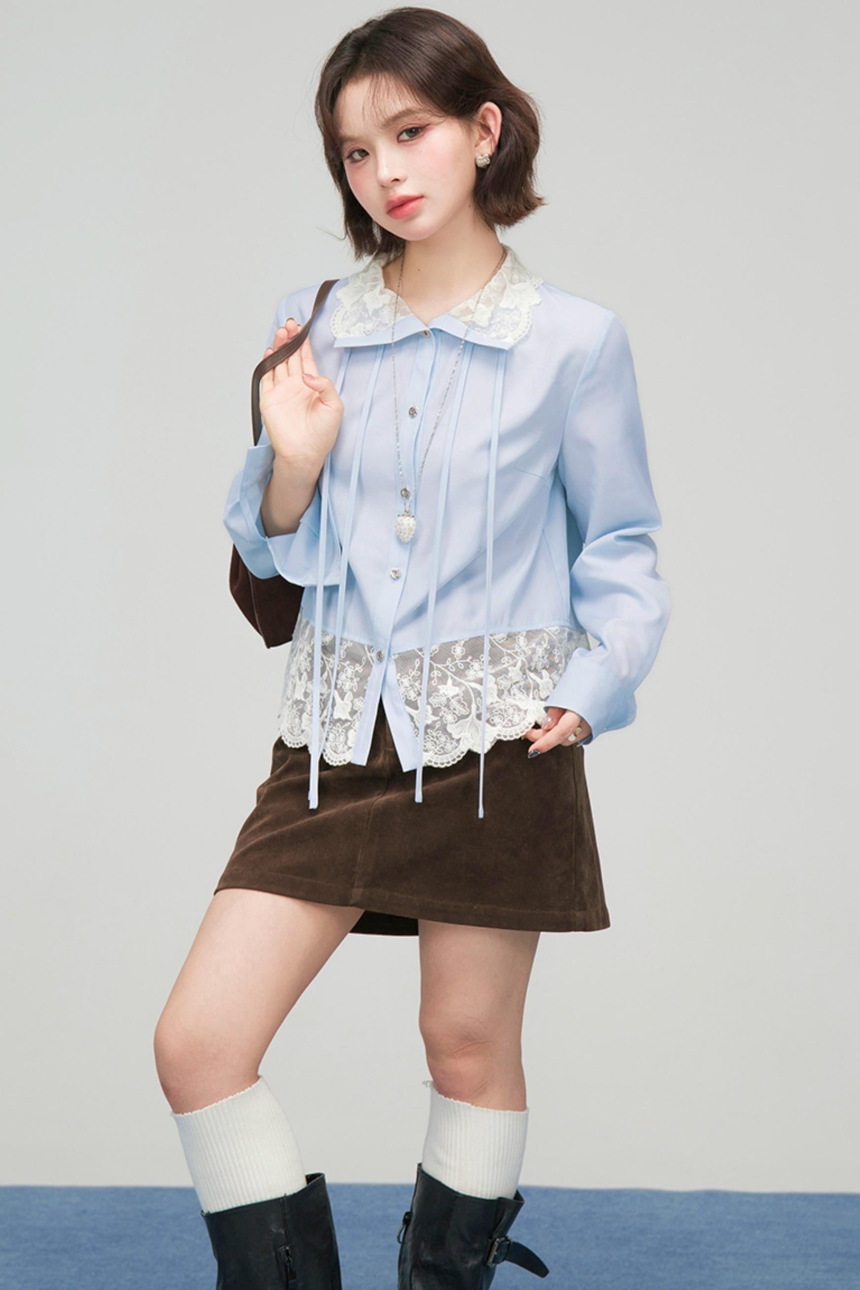 ❤Lace Ribbon Ruffled Blouse❤