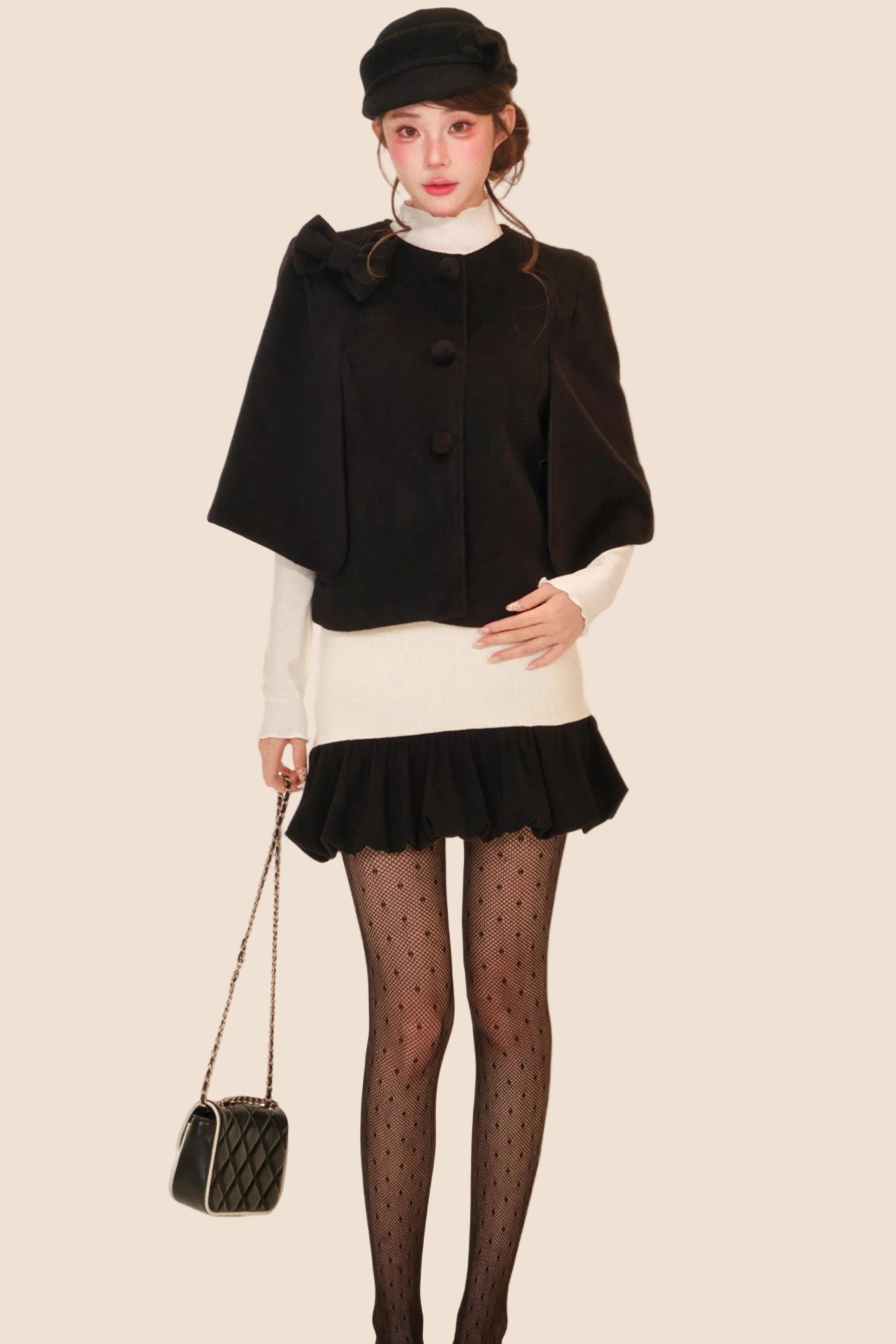 ❤Monochrome Floral Cape Dress + Outerwear❤
