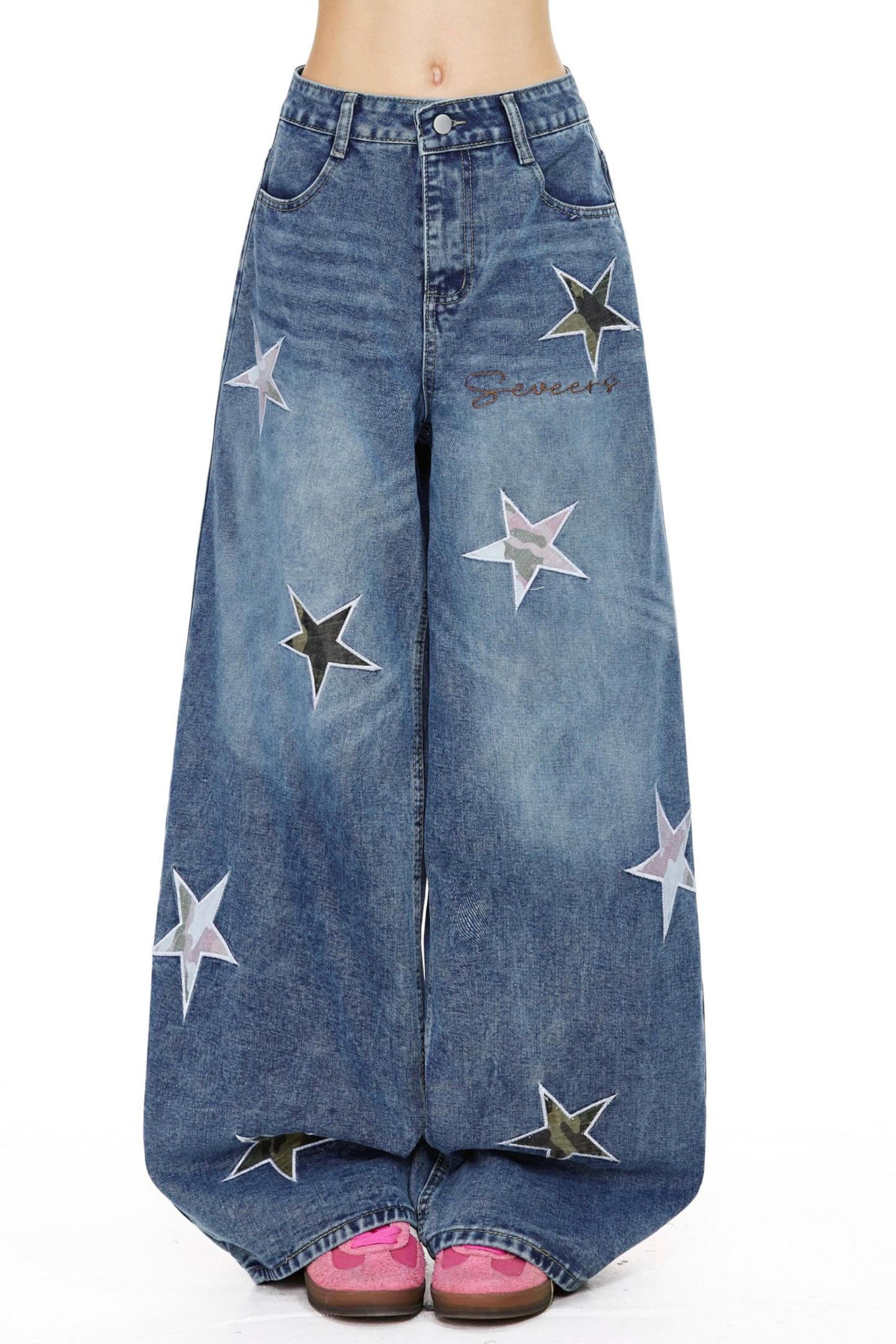 Retro Blue Star Denim Pants