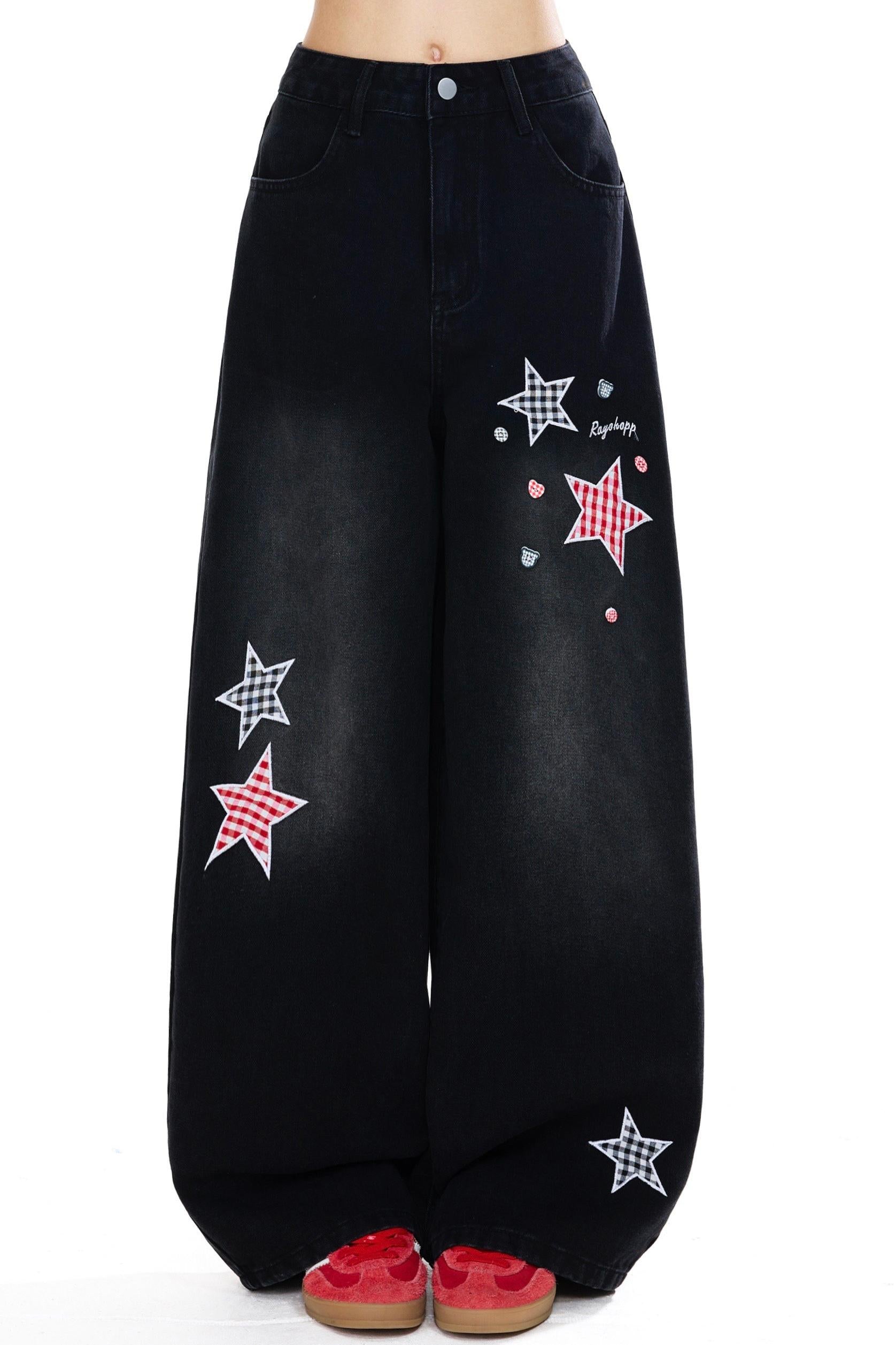 American Retro Star Patch Denim Pants