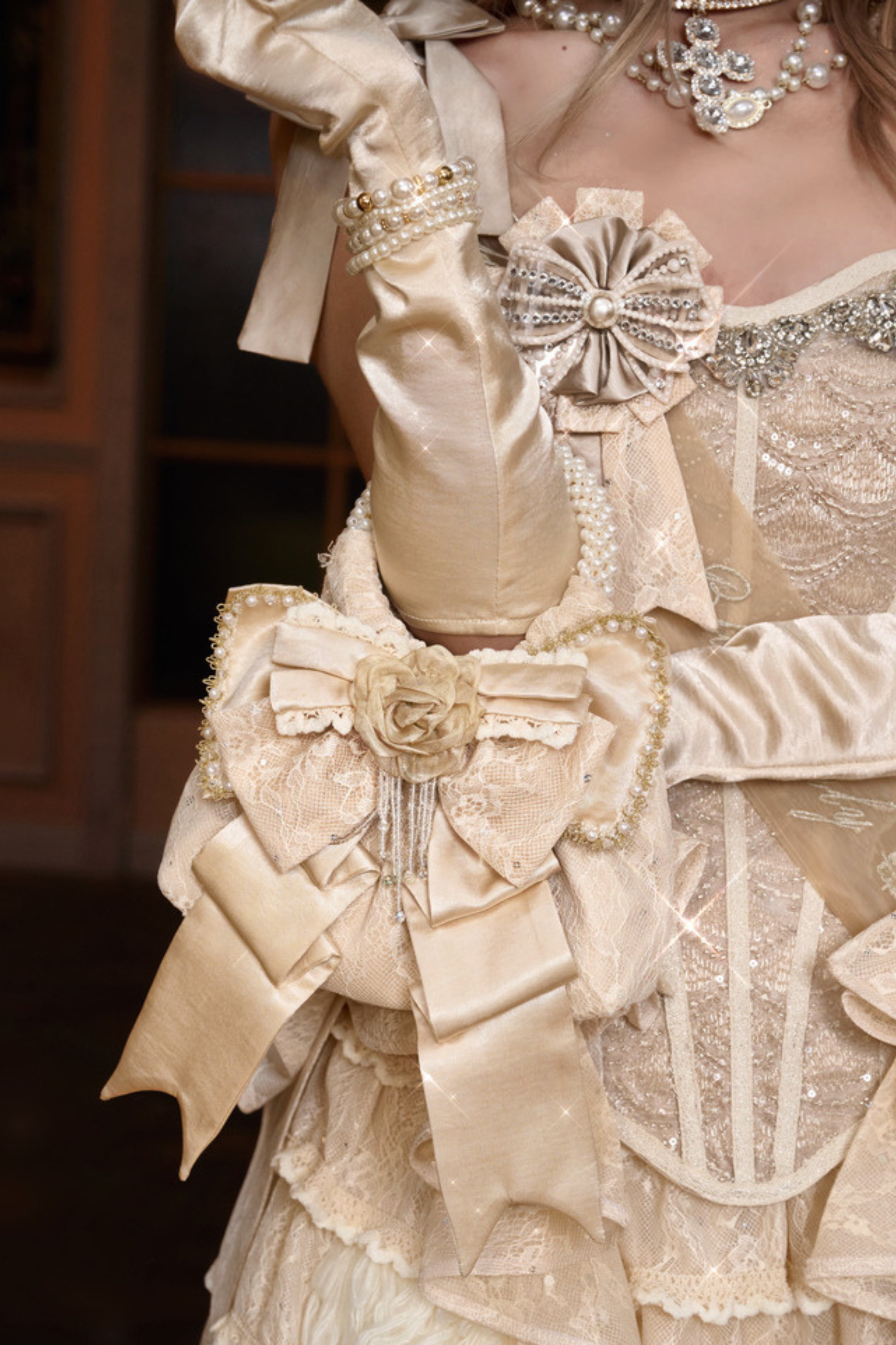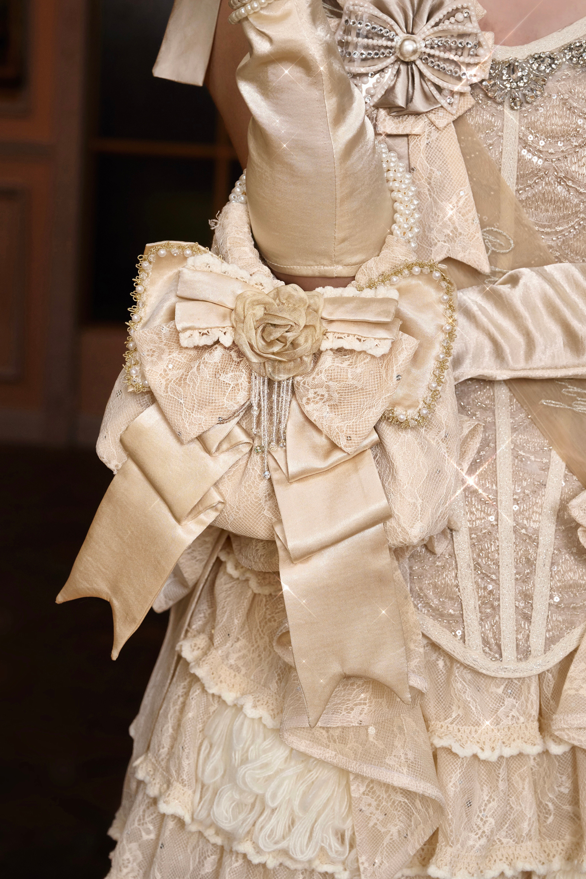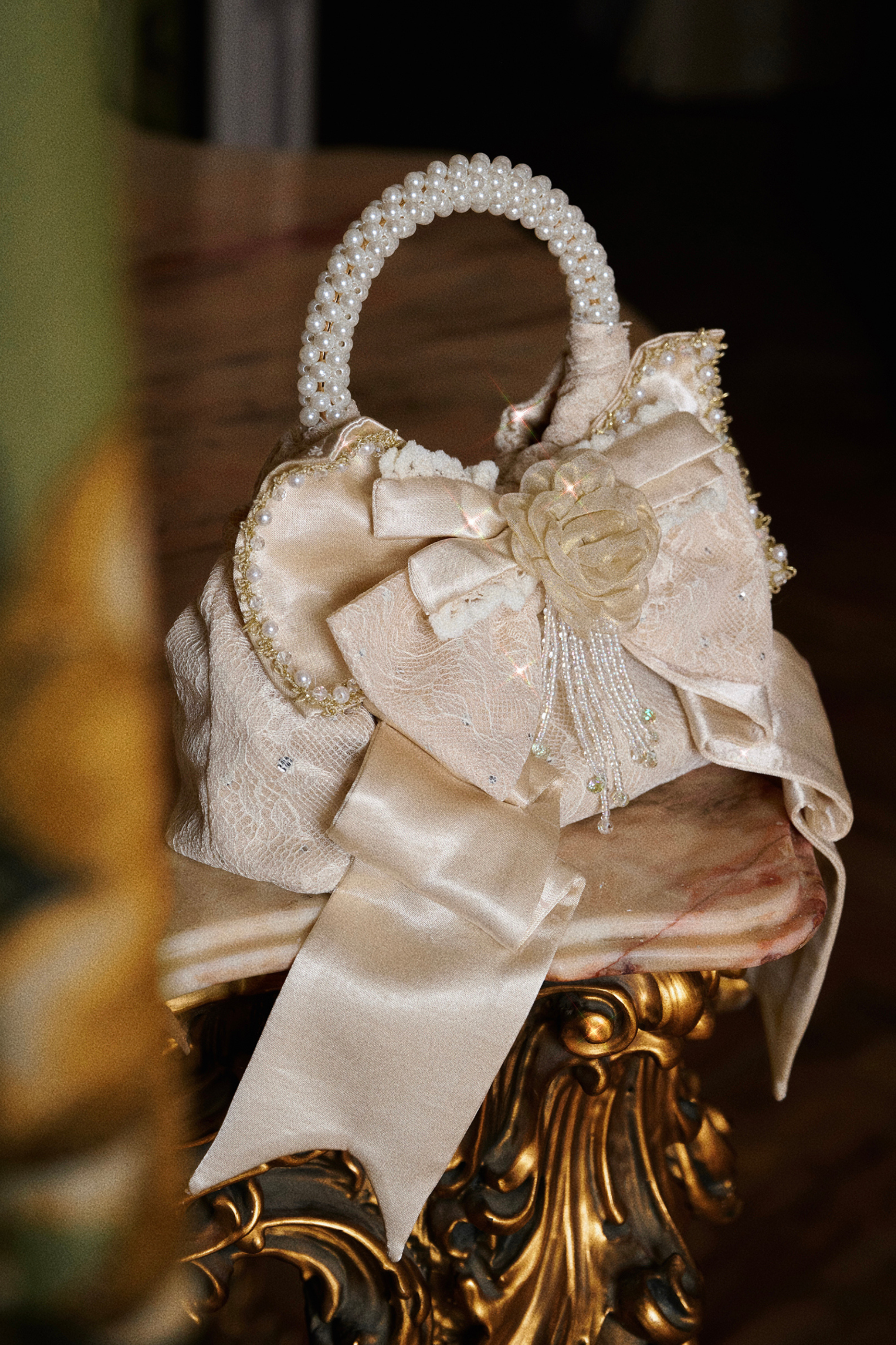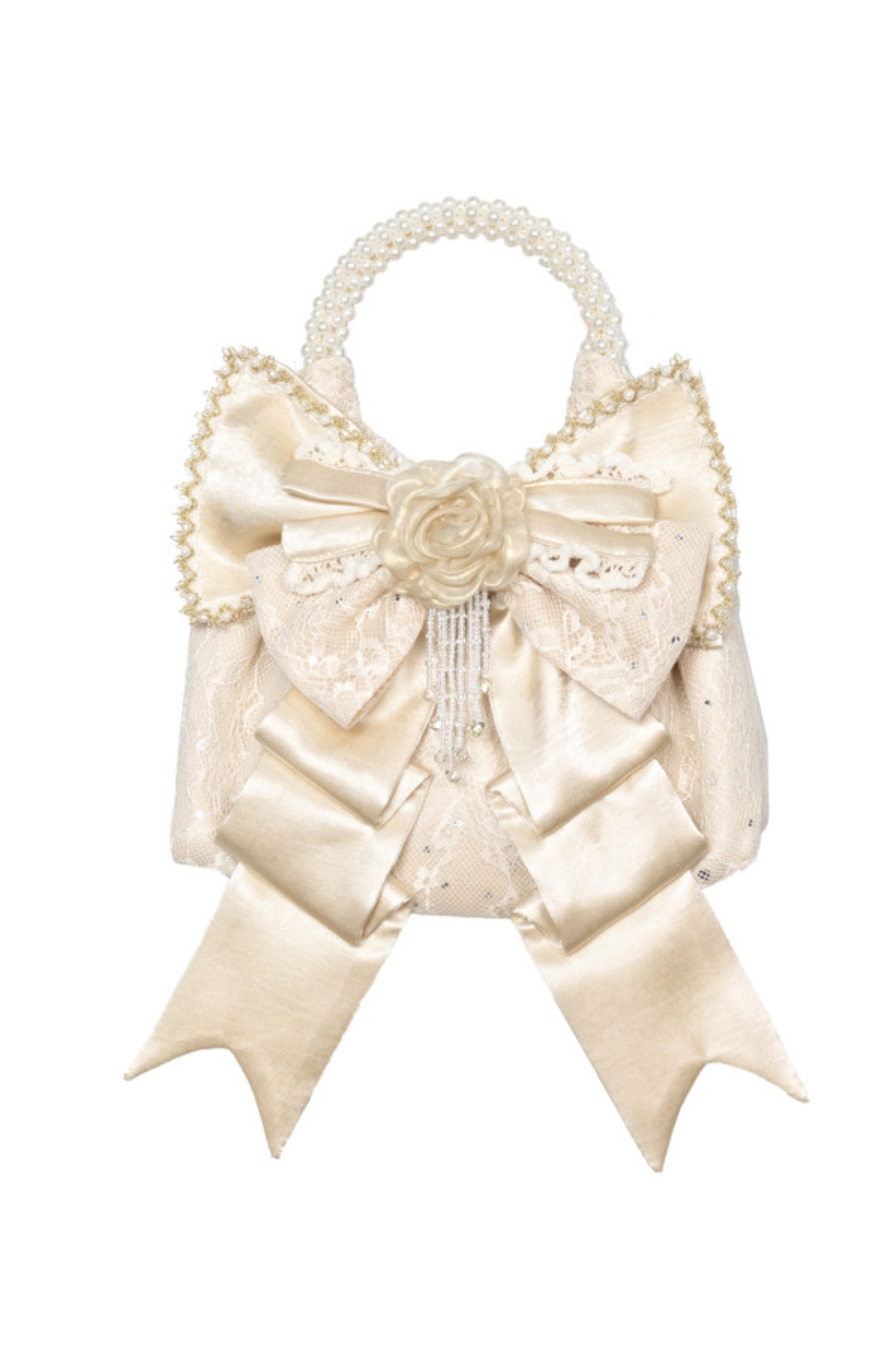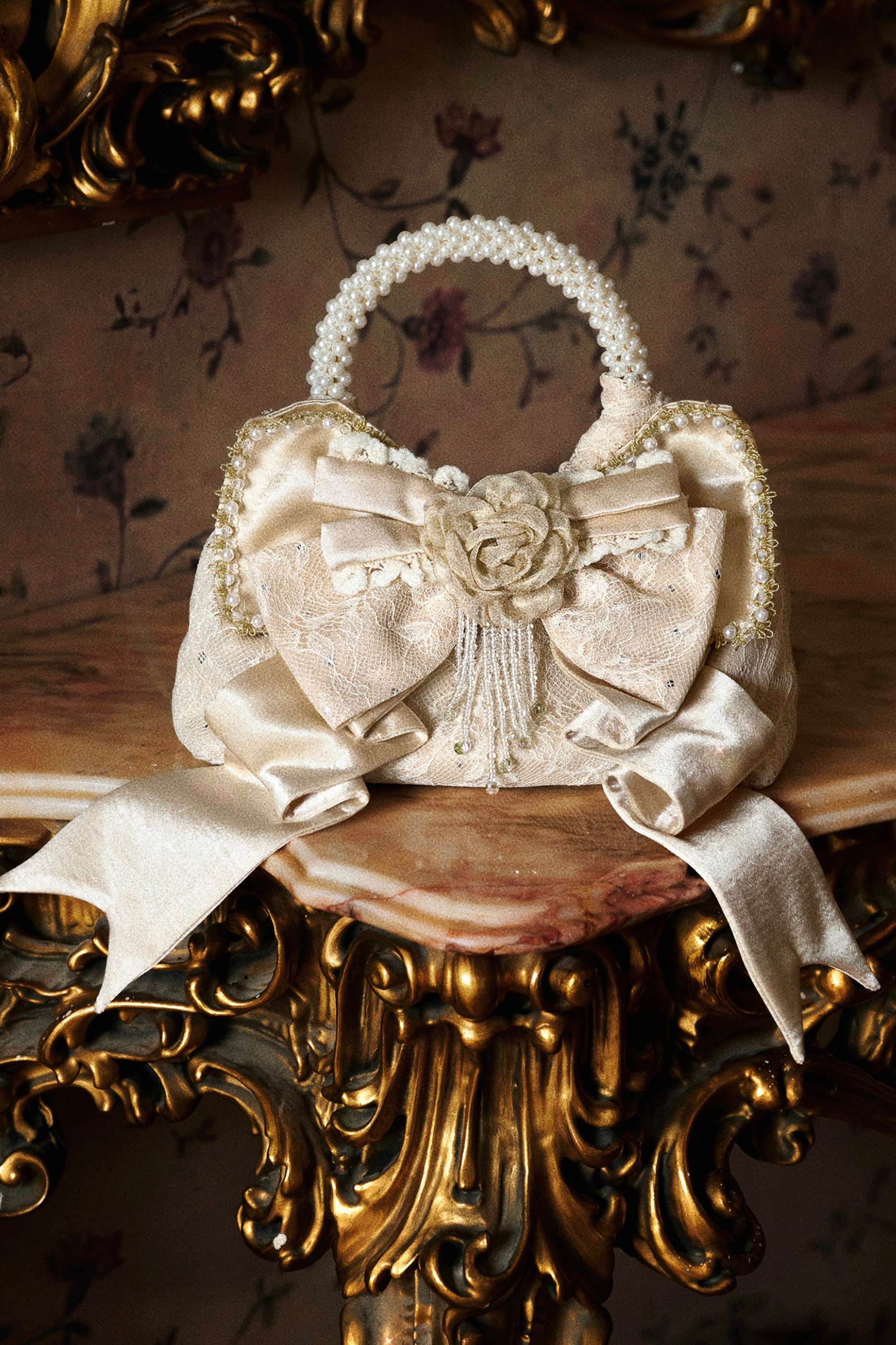 サテンリボンパールハンドバッグ
