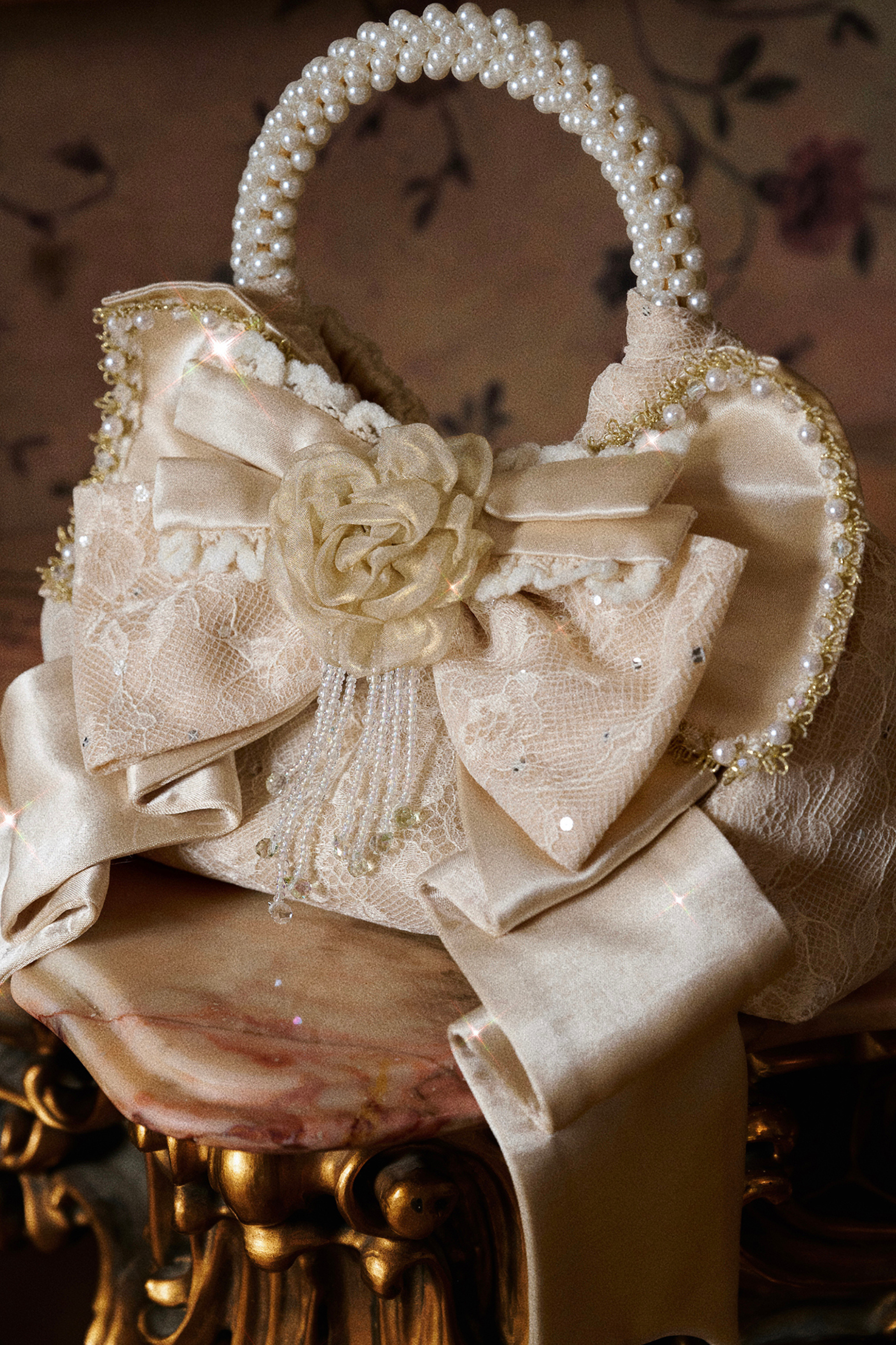❤サテンリボンパールハンドバッグ❤