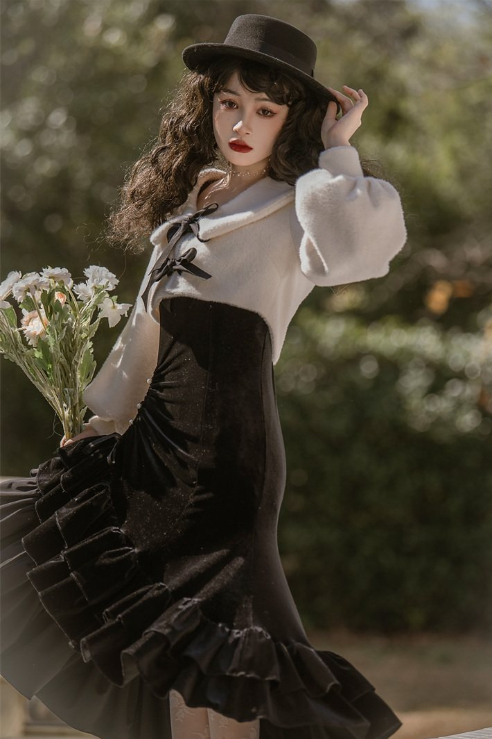 ❤Mermaid Asymmetrical Camisole Dress + Ribbon Jacket❤