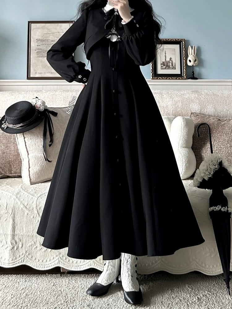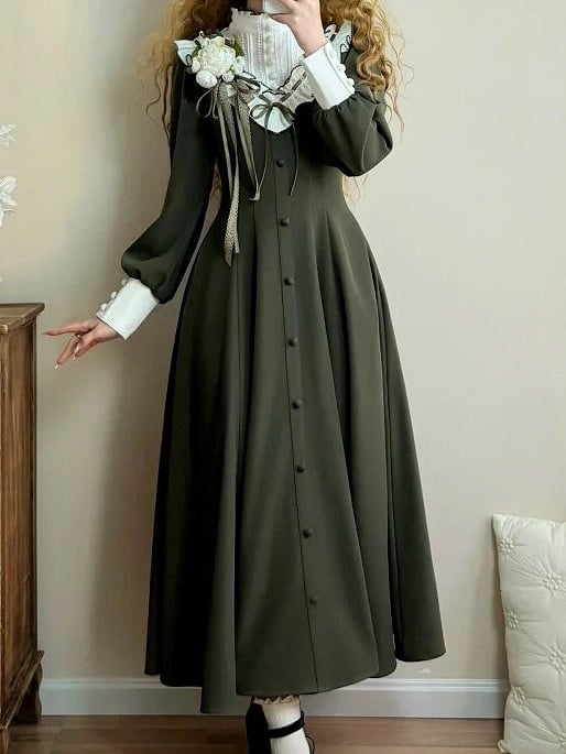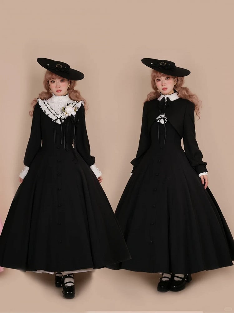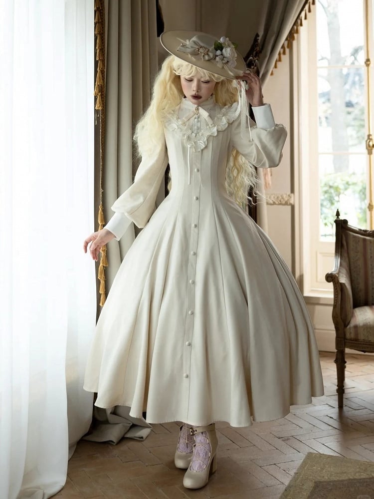 ❤︎【February 23 Reservation Deadline】Classic Elegant Series Frill Stand Collar Flare Long Dress❤︎ ⚠️ Due to high demand, delivery may take about 4 months.