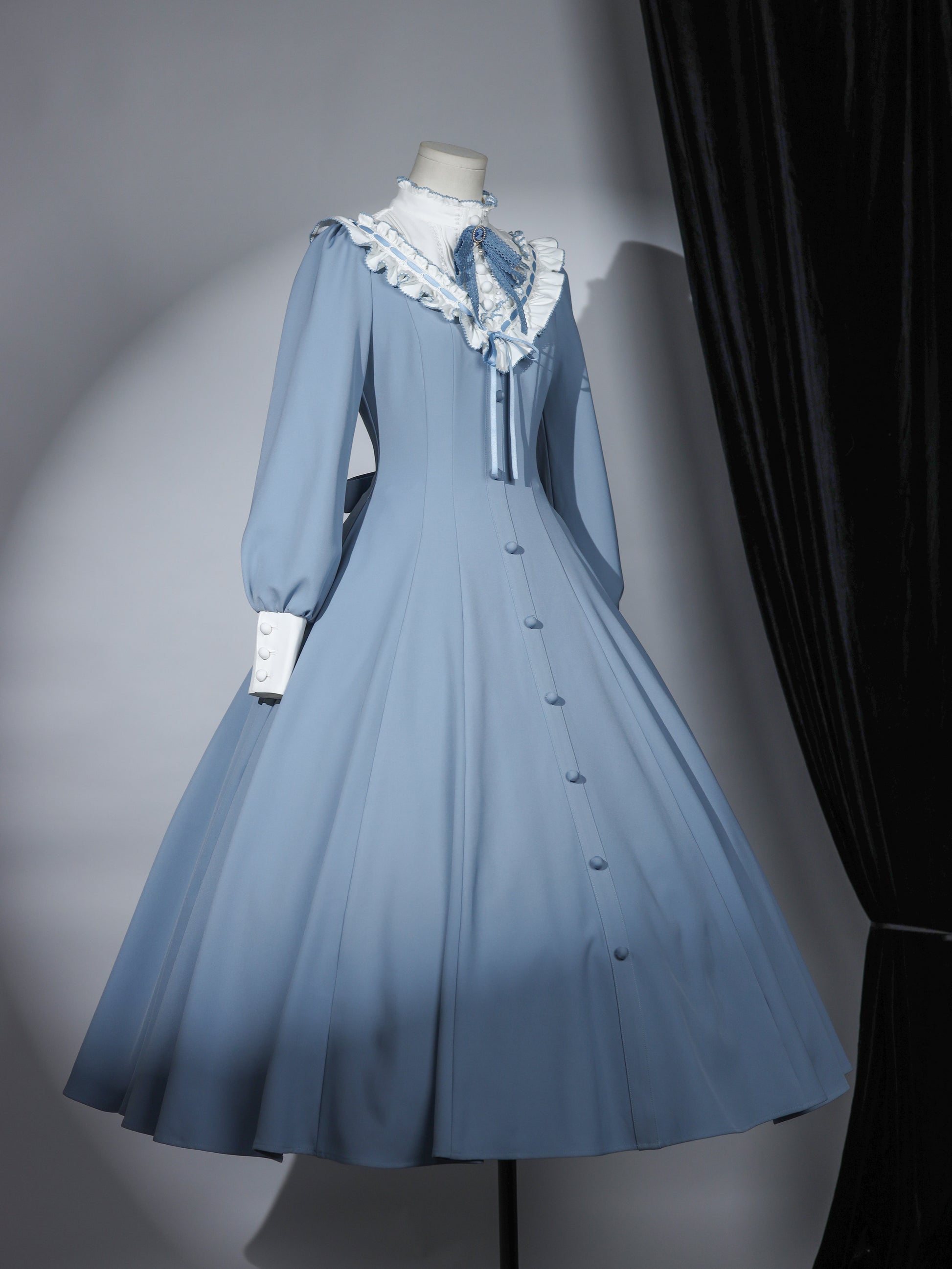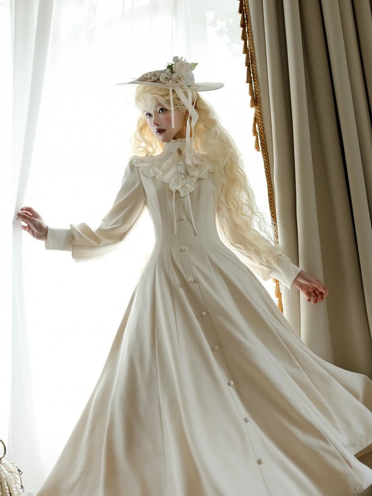 【Reservation deadline February 23】Classic Elegant Series Frill Stand Collar Flare Long Dress