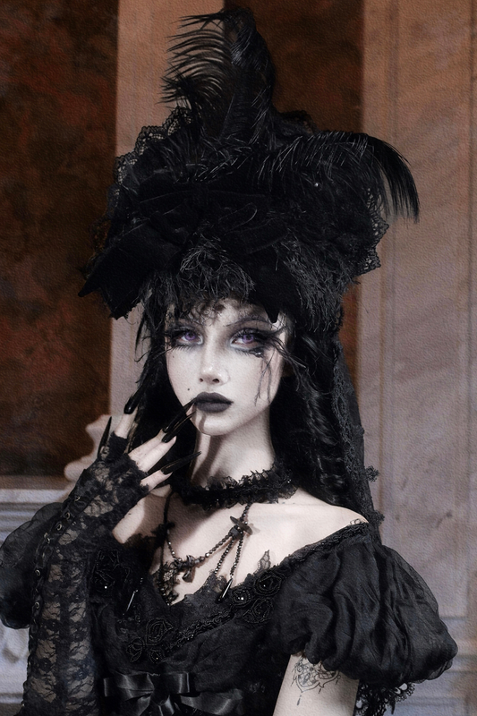【12月8日予約締切】Black Mist Banquetゴシッククロスローズボンネット+ベール+ブローチ