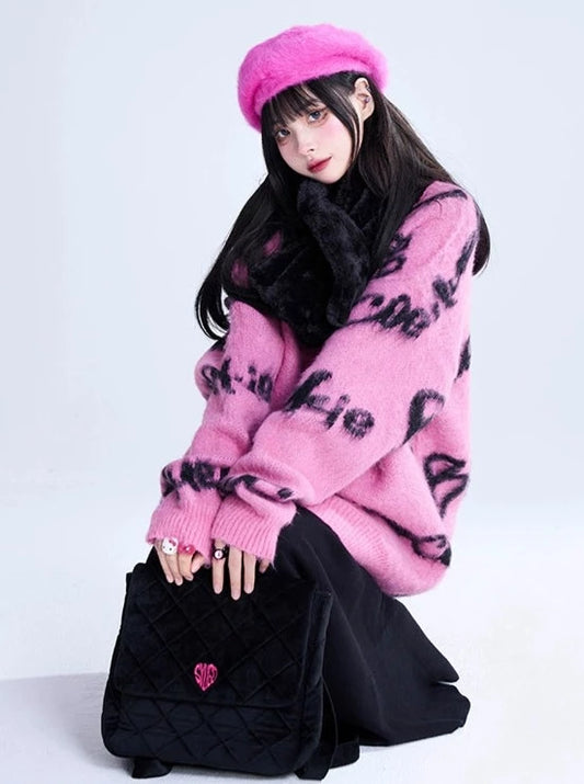 Top cardigan tricoté mi-long, imprimé lettres, col en V