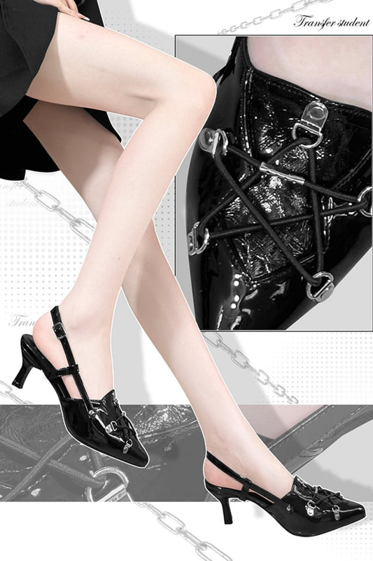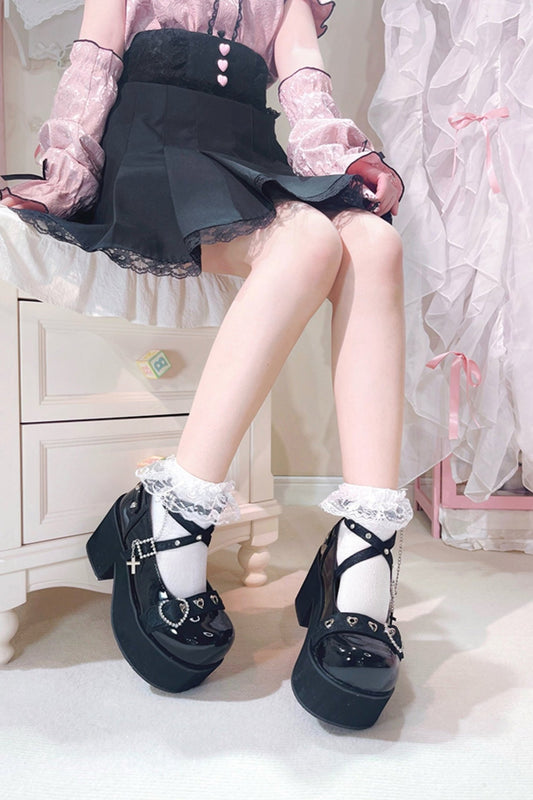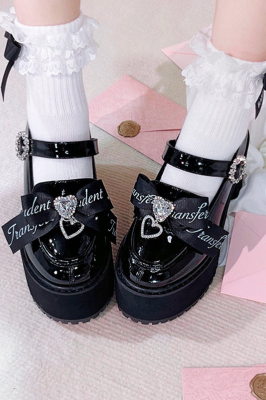 Chaussures Lolita à talons hauts et à cœur ouvert [Ruban orné de bijoux et ruban normal].