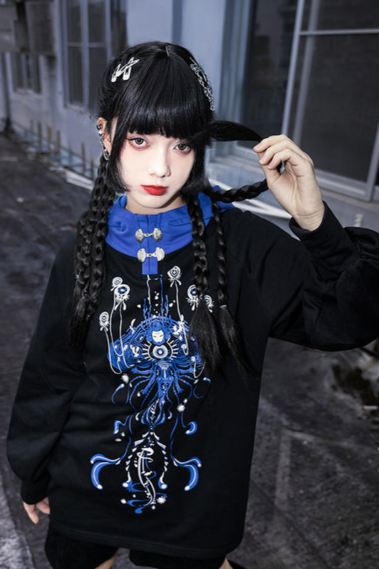 Chemise à manches longues rétro noire irrégulière