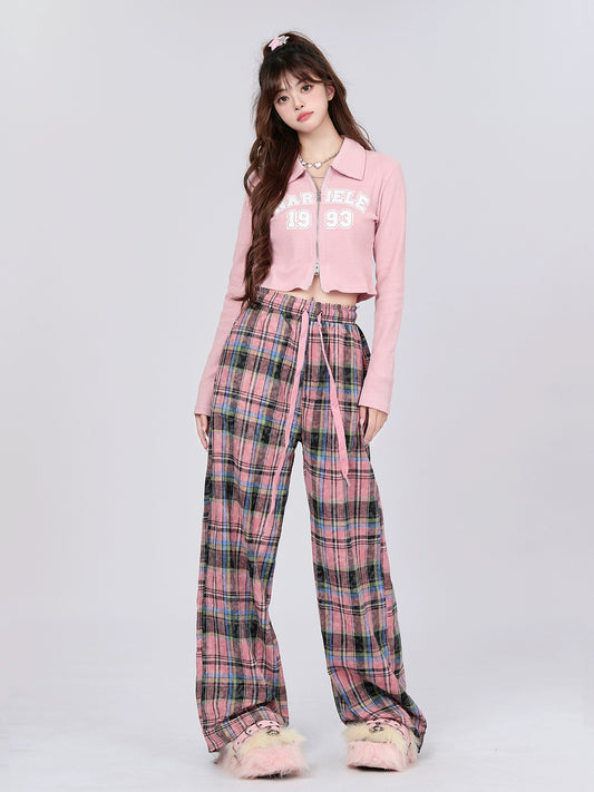 Check Hoodie Zip Sports Casual Sweat Jacket