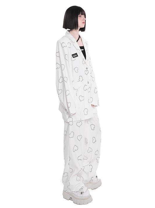 Pantalon droit décontracté imprimé cœur