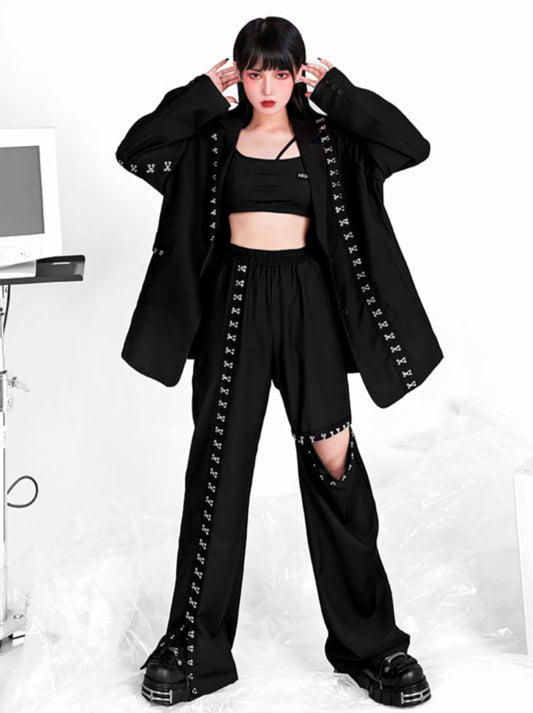 Y2K Coolblack pantalon à bretelles détachables avec fermeture éclair en métal