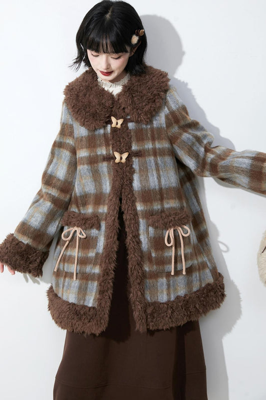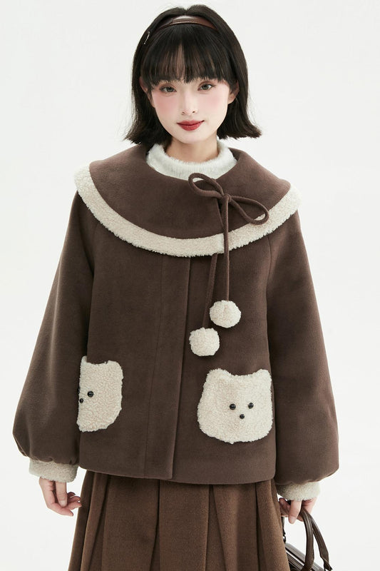 フレンチブラウンヴィンテージロリータドレス+ケープ+ベレー帽+バッジ